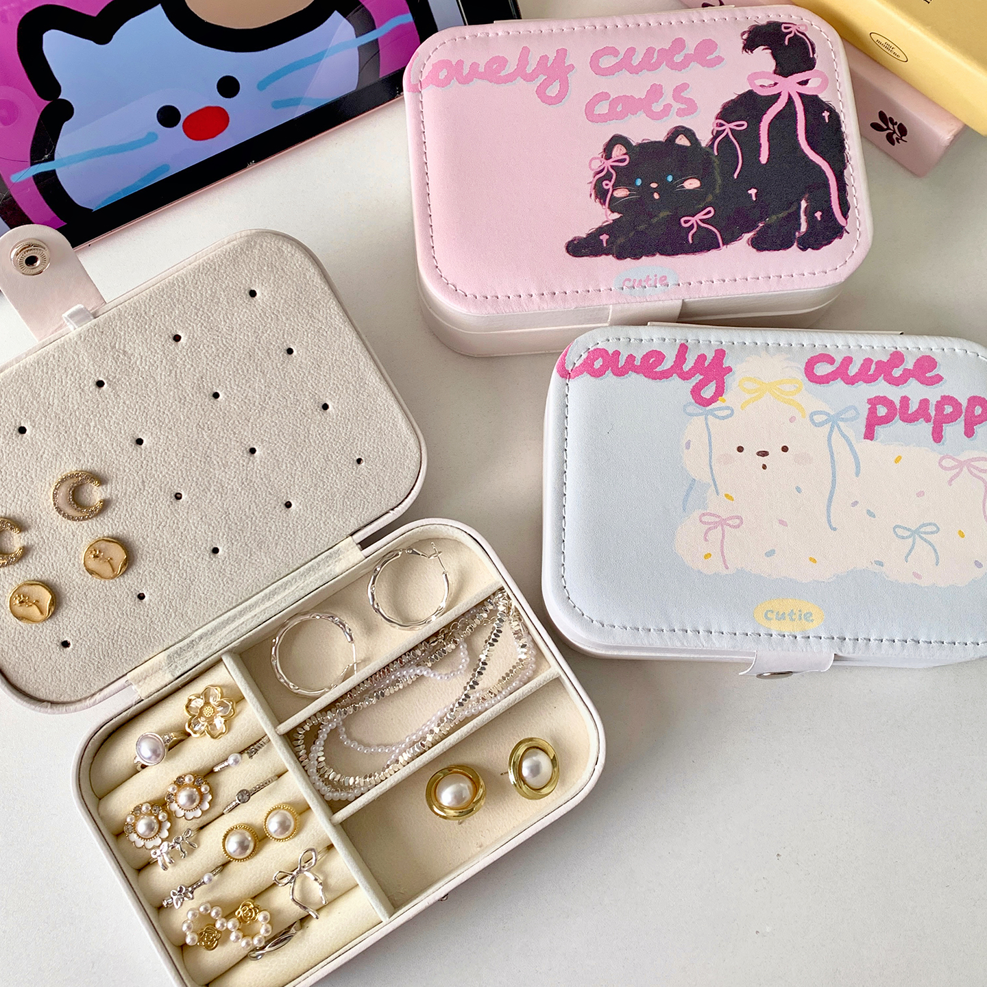 可爱猫咪便携式首饰盒戒指耳钉