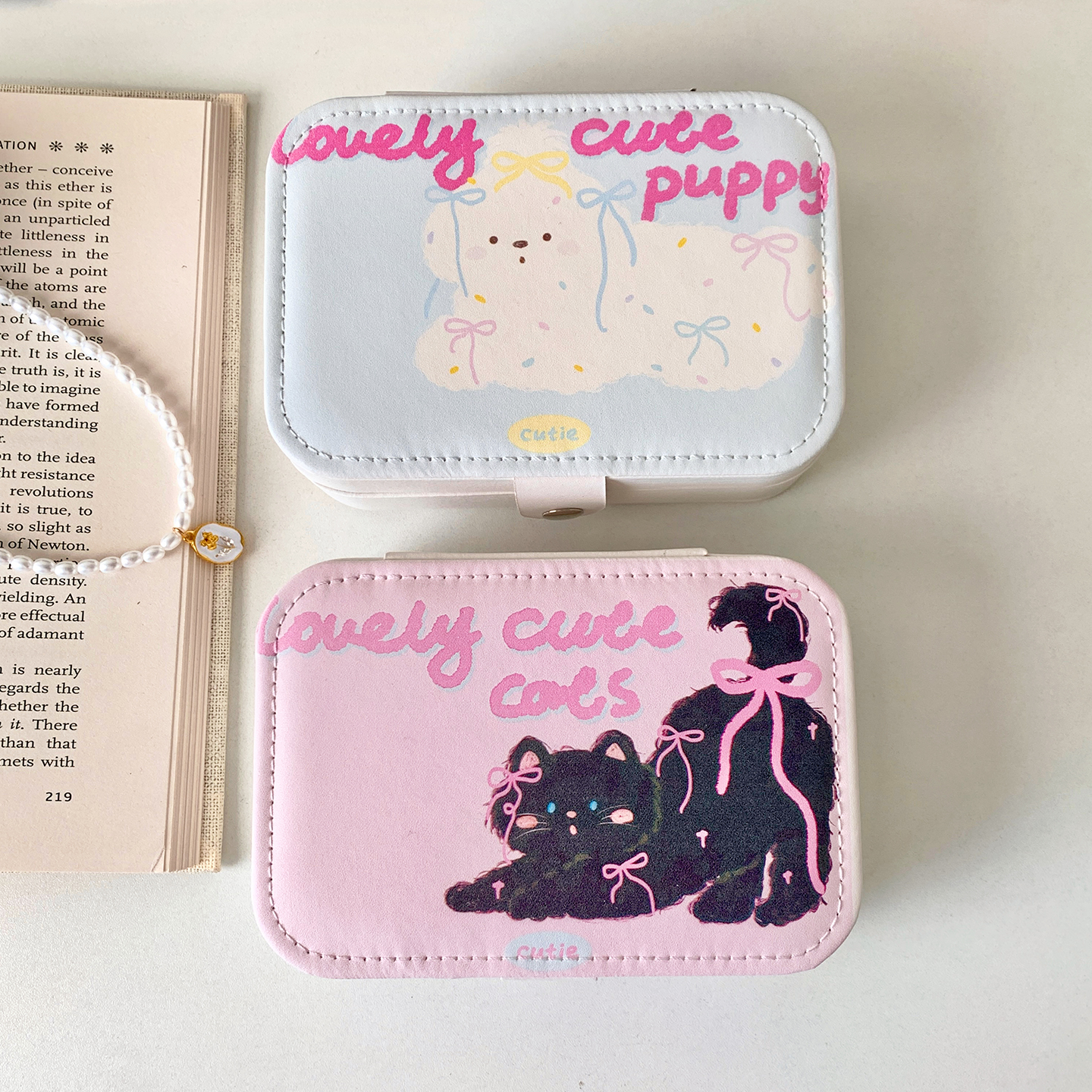 蝴蝶结猫咪首饰盒便携式大容量旅行耳钉戒指项链手饰品小型收纳盒
