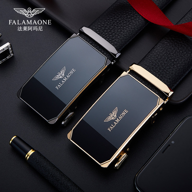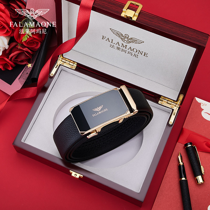 正品法莱阿玛尼内扣皮带男士款真皮奢侈品牌裤腰带七夕送男友礼物