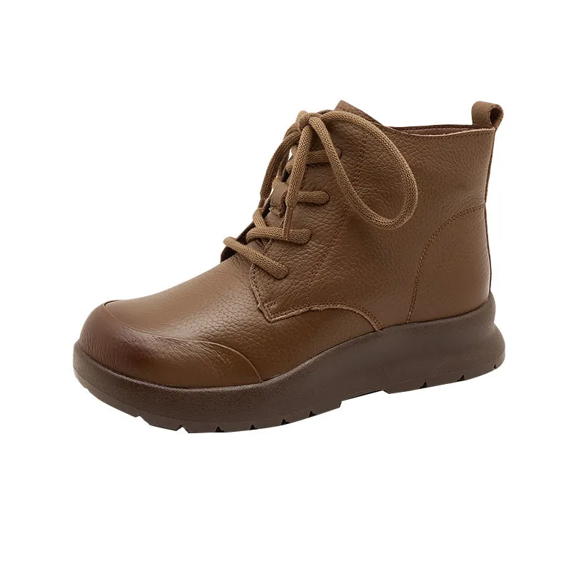 头层牛皮秋冬英伦风真皮马丁靴女圆头系带拉链复古休闲鞋女妈妈鞋