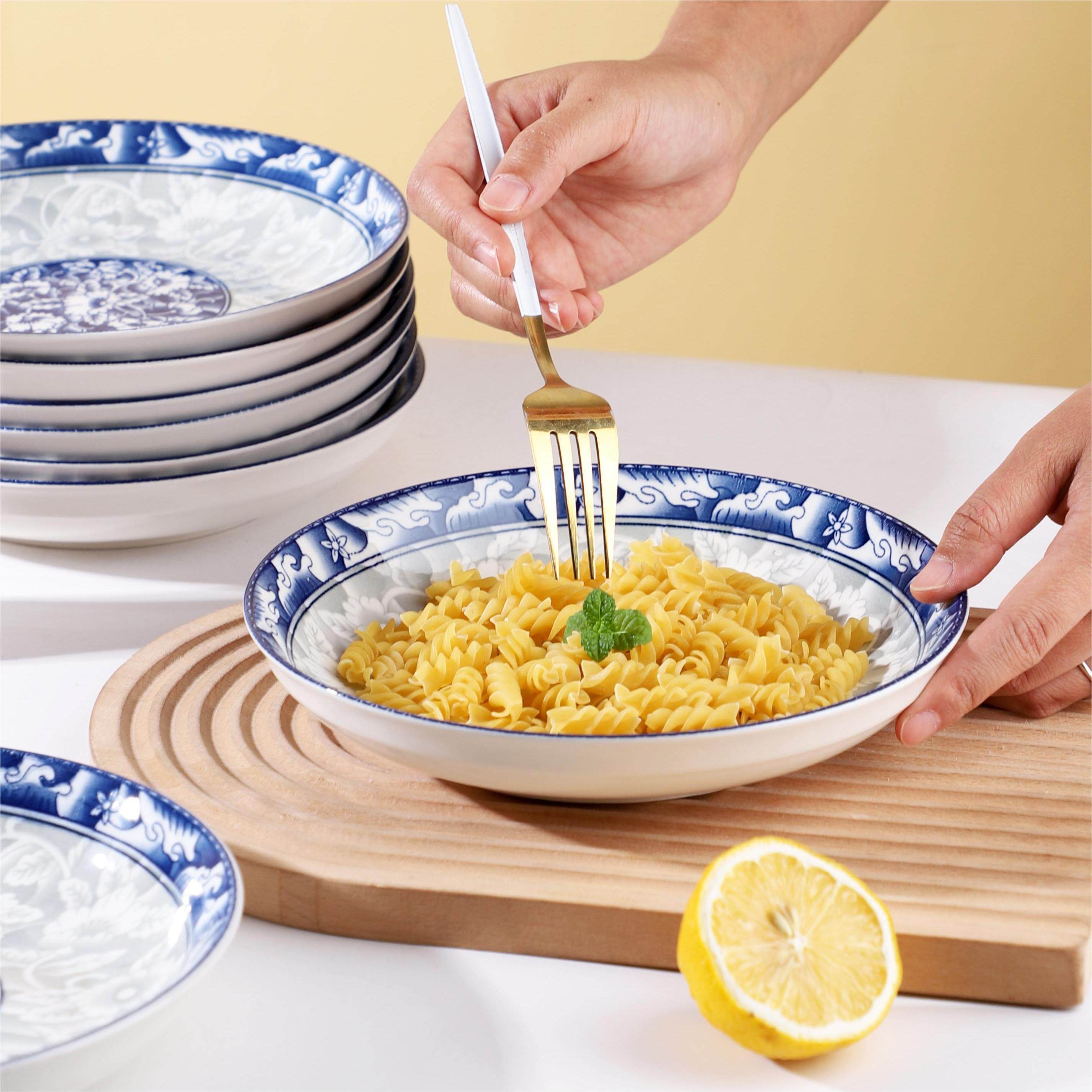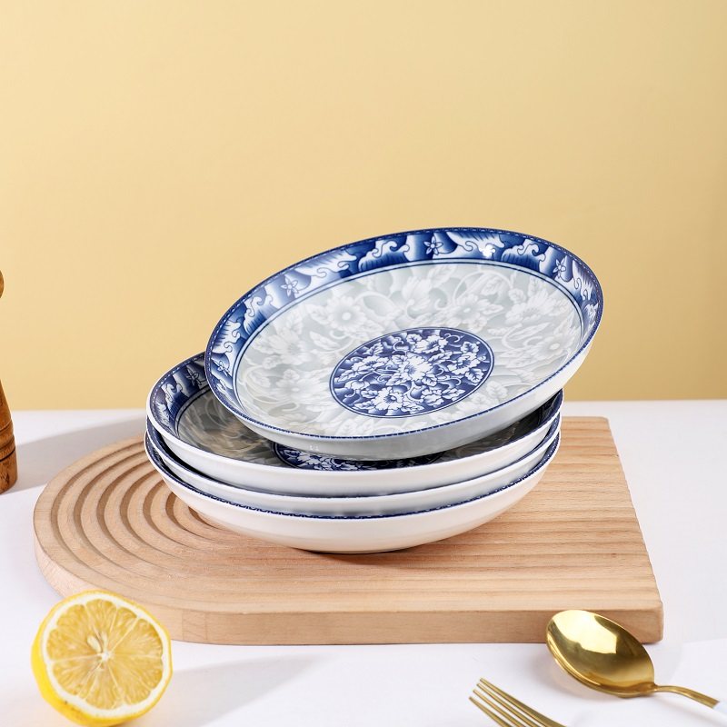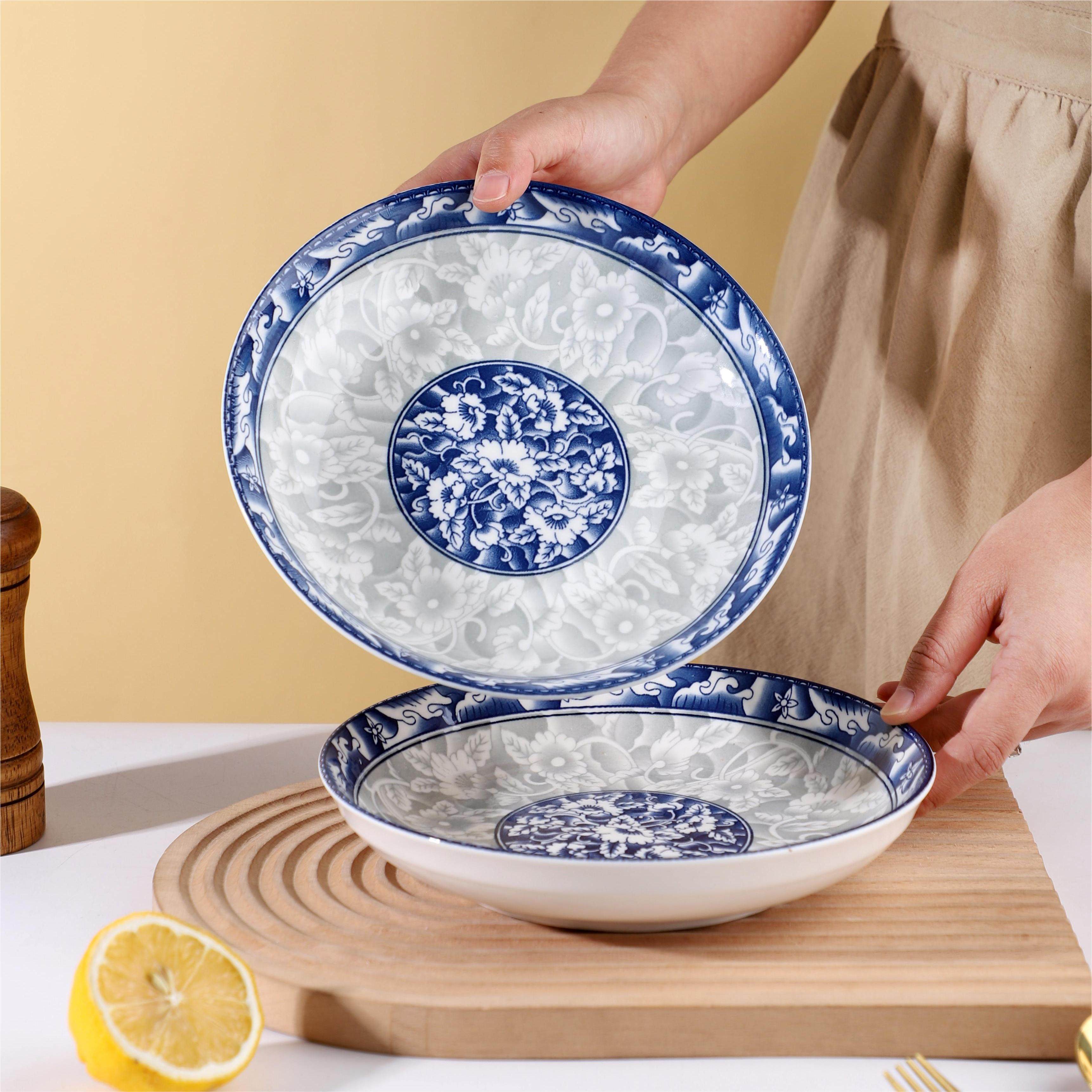 青花瓷陶瓷盘子菜盘家用饭盘汤盘果盘餐盘微波炉餐具菜碟子家用