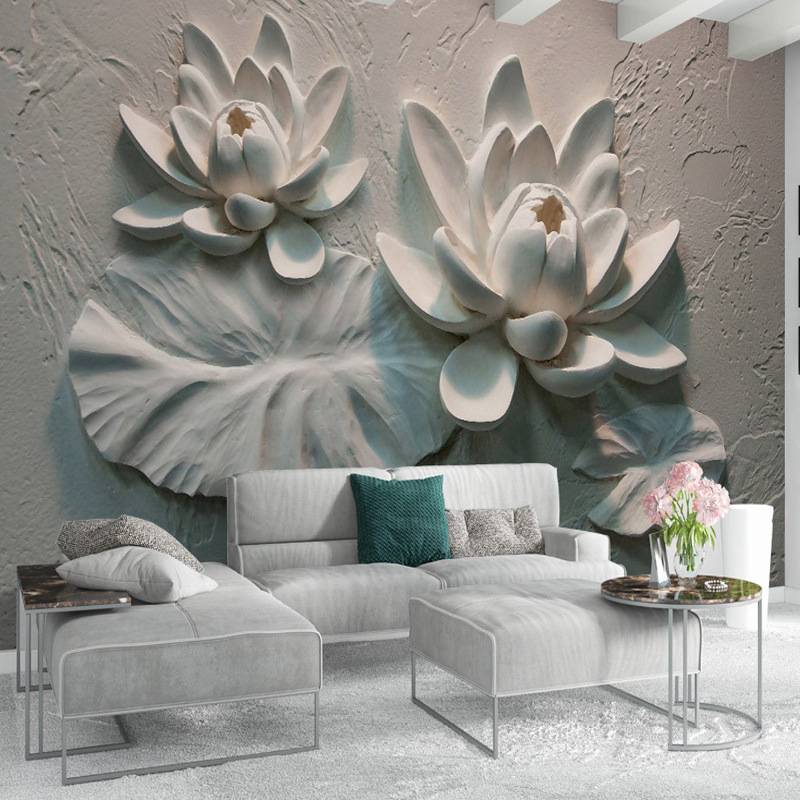 3D立体欧式石膏视觉浮雕花电视背景墙壁纸客厅轻奢8d影视墙布壁画