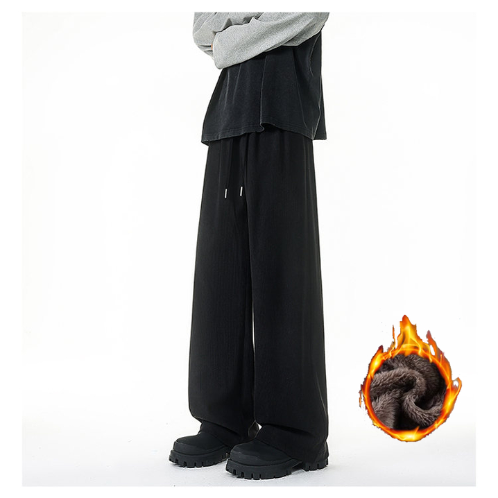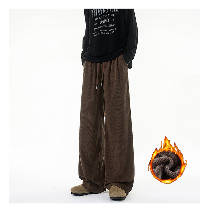 灯芯绒裤子男款秋冬季加绒加厚男士休闲裤直筒宽松阔腿羊羔绒卫裤