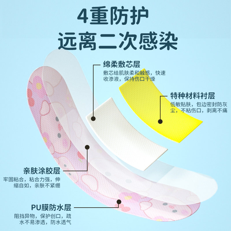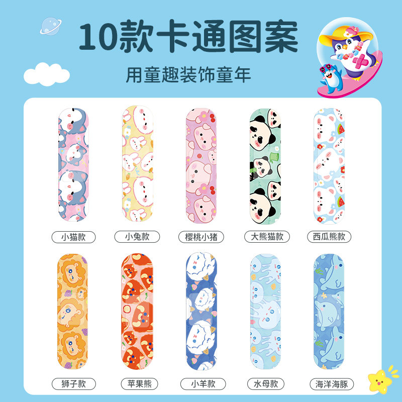 超亚医用创口贴防水透气伤口止血创可贴儿童可爱卡通企鹅少女防磨
