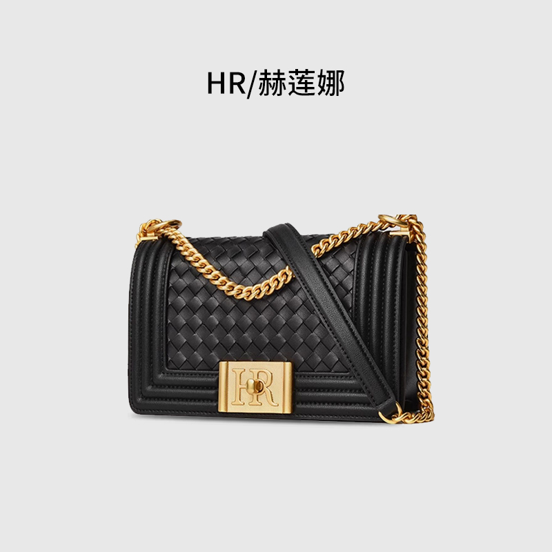 HR赫莲娜女包商场同款2025新款包包羊皮编织单肩包链条小方斜挎包