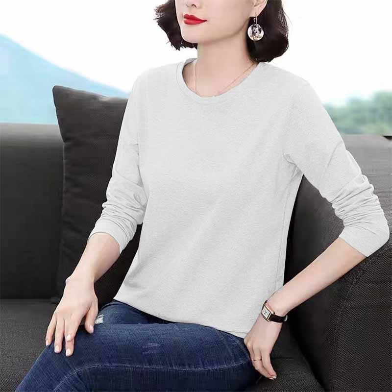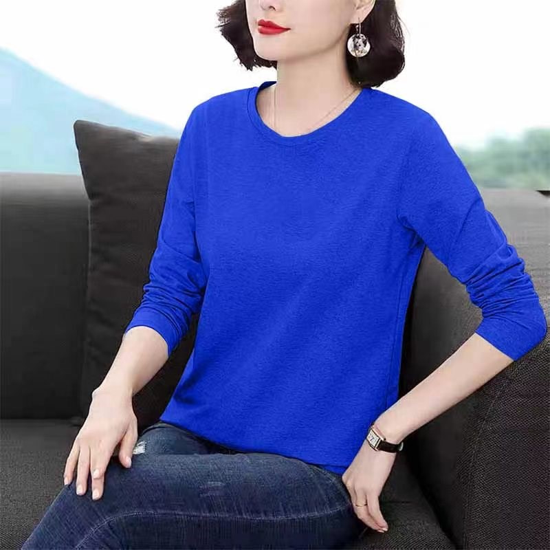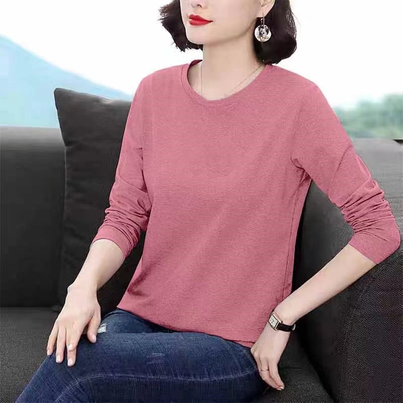长袖t恤女秋装2024年新款纯棉大码胖mm中年妈妈装秋衣打底衫上衣