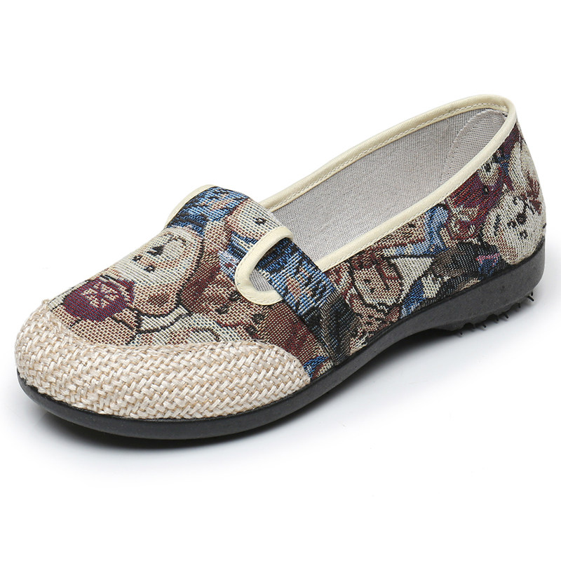 老北京布鞋女休闲民族风亚麻帆布鞋中老年妈妈女单鞋子浅口豆豆鞋