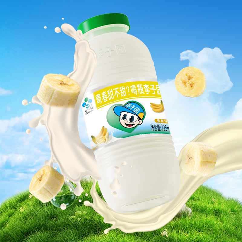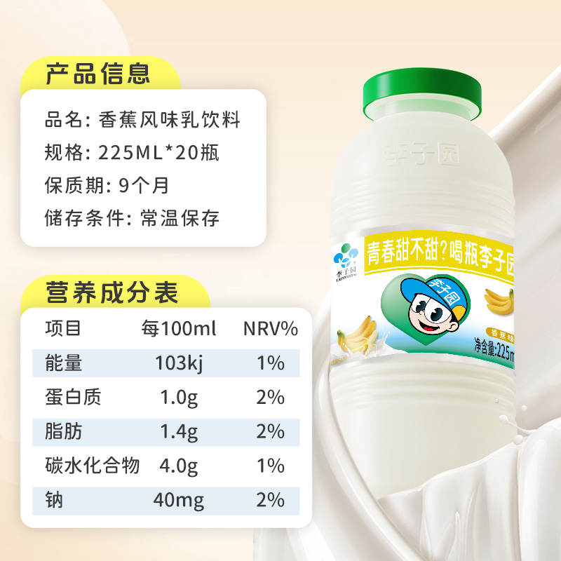 李子园0蔗糖香蕉味甜牛奶饮品早餐奶225ml*20瓶整箱-【5月产】