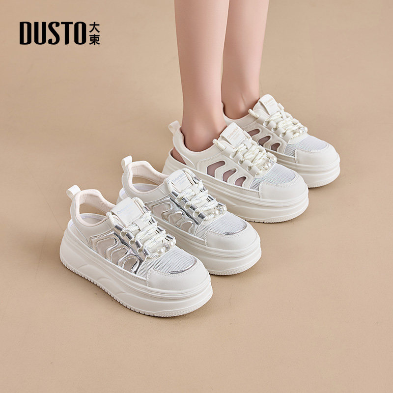 大东官方女鞋厚底小白鞋女款2025新款冬季鞋子镂空透气网鞋女板鞋