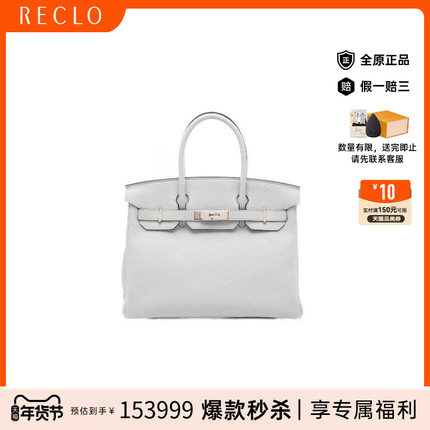 中古Hermes爱马仕女包A级95新birkin 30铂金包 30牛皮手提包蓝色