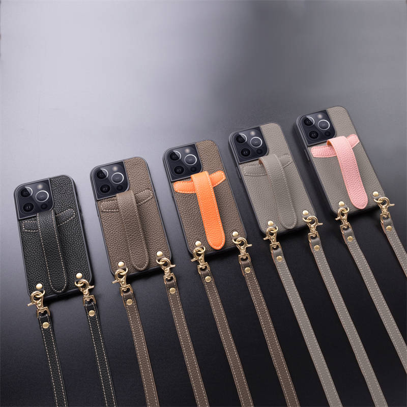 COGURE适用苹果17/16/15Promax手机壳女款新款iPhone14/13真皮斜挎带挂绳可背腕带支架高级感全包防摔挂脖Air