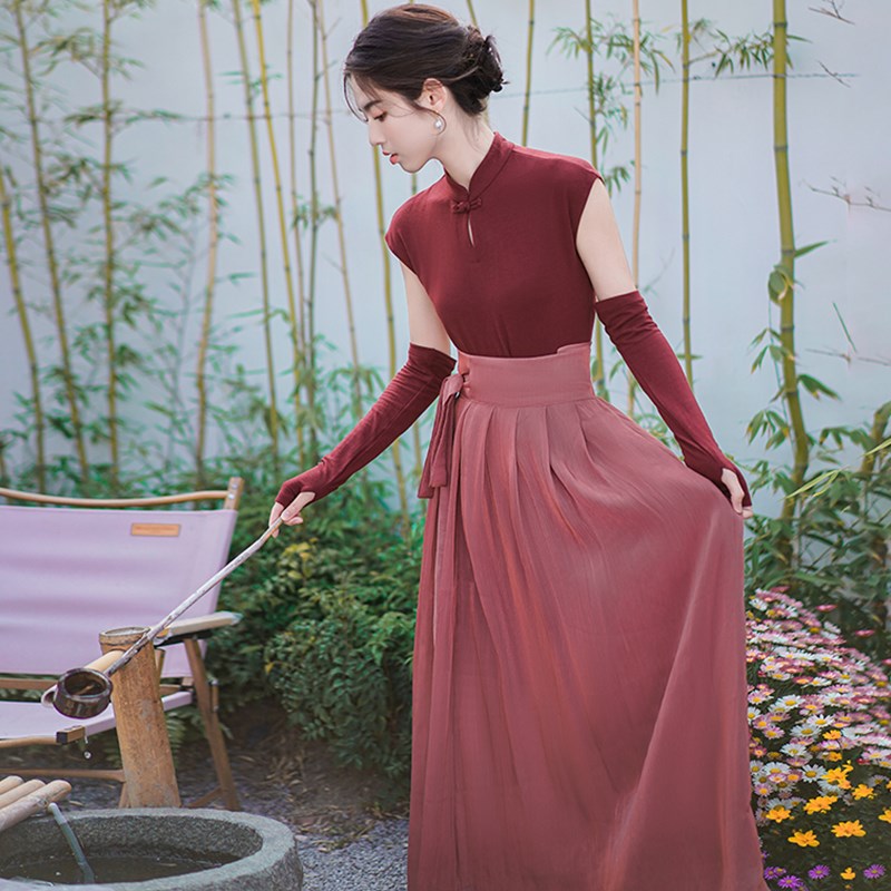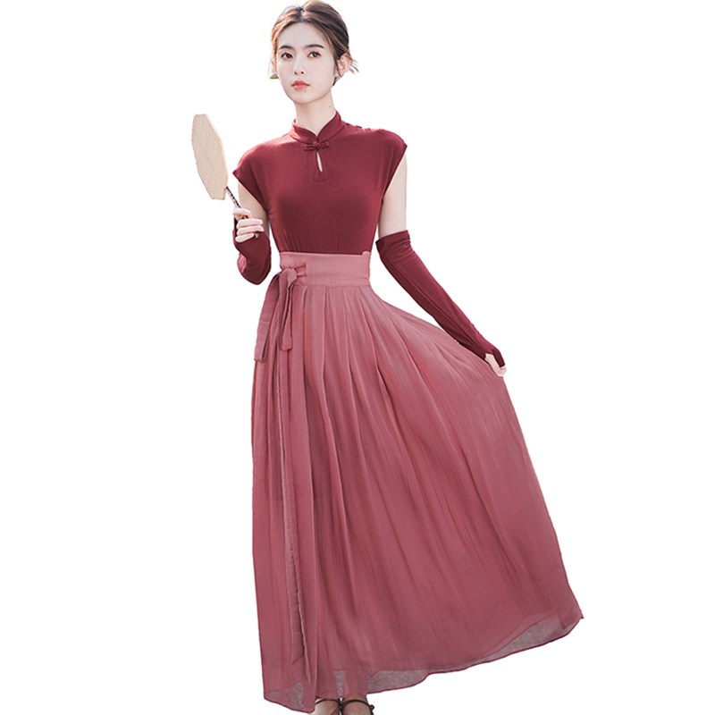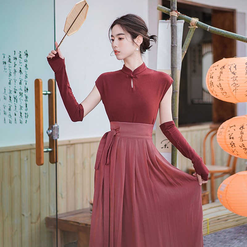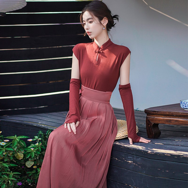 极速新中式旗袍唐装n女中国风套装三件套女装改良汉服半身裙复古