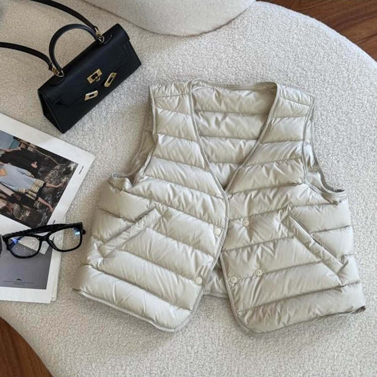 秋冬轻薄V领短款羽绒马夹女