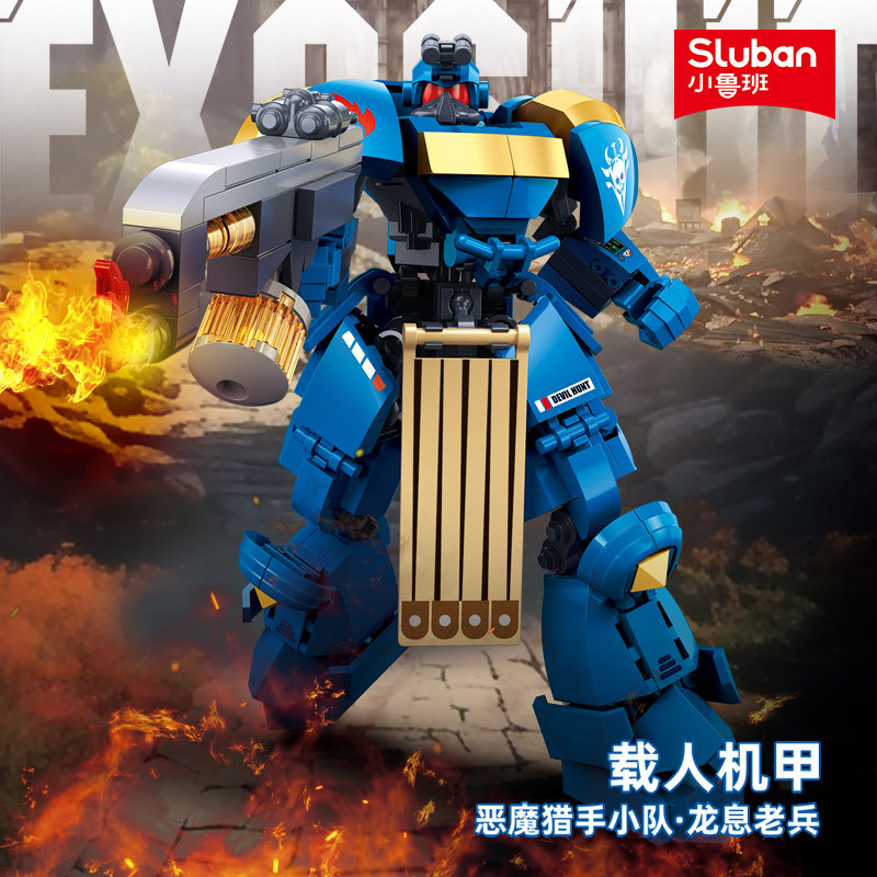 小鲁班积木星际战士机甲机器人战锤老兵模型拼装儿童玩具男孩礼物