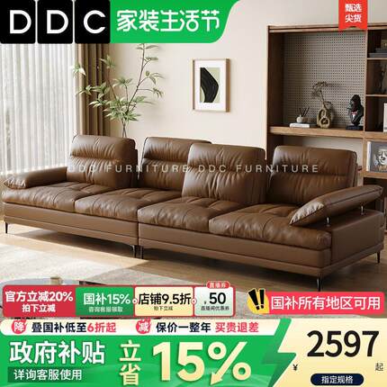 DDC意式极简真皮沙发靠背可随意调节移动皮艺沙发客厅2025新款