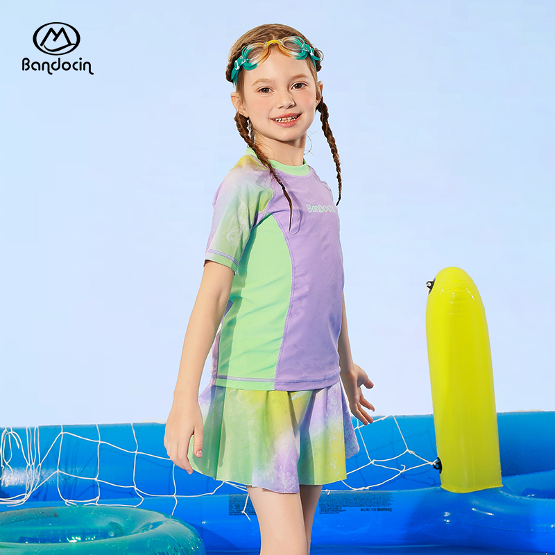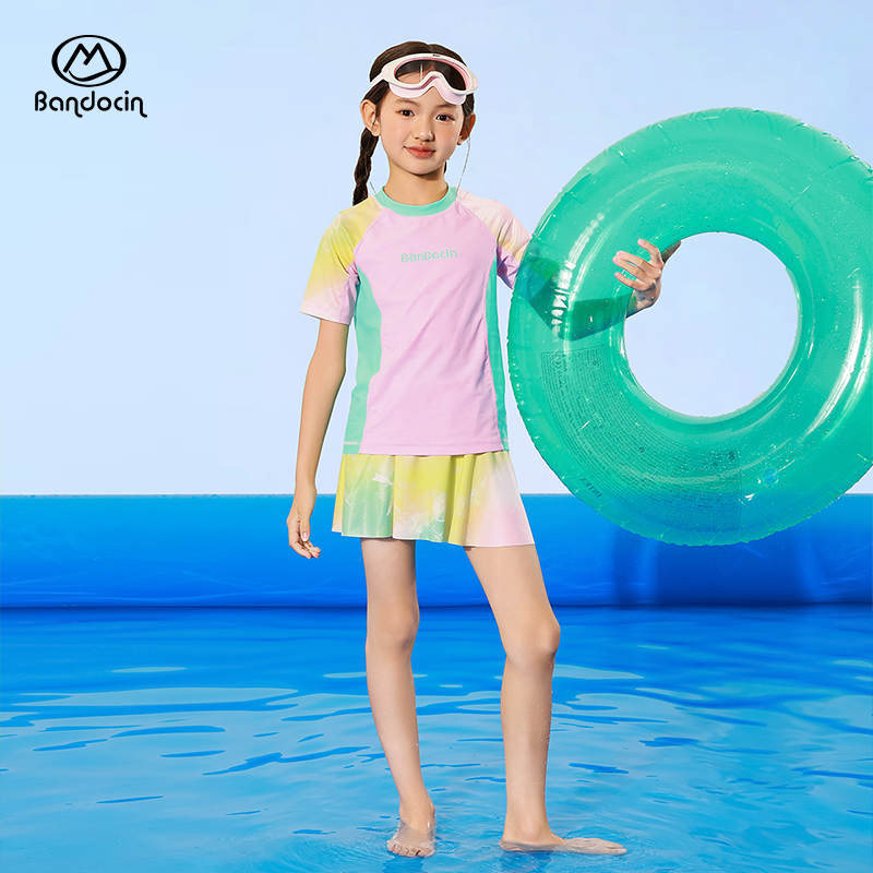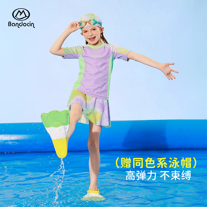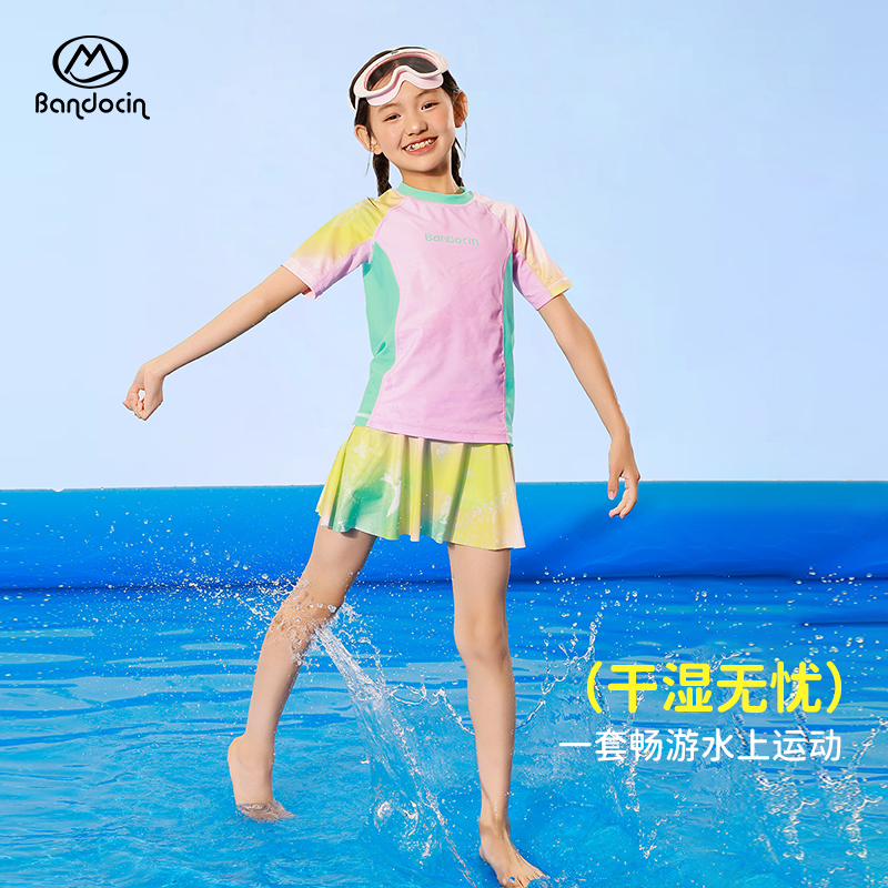 半度闲女童夏季分体泳衣凉感舒适