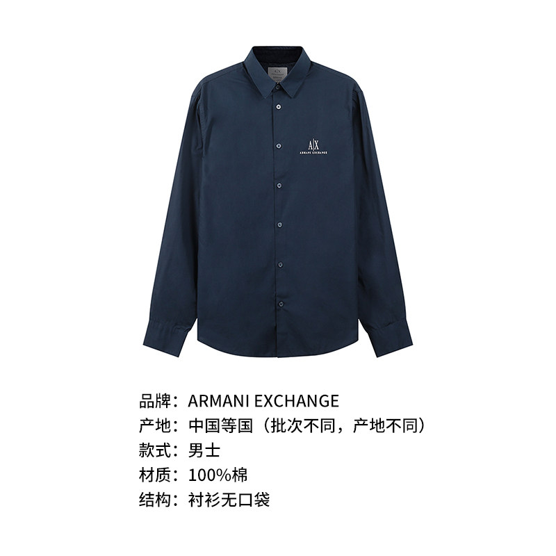 【甄品精选】AX阿玛尼 男士棉质长袖衬衫 8NZCP2 ZNBJZ