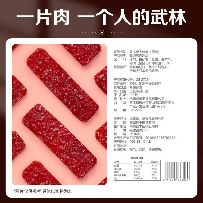 百草味果木炭火烤肉70g猪肉脯肉干休闲零食网红