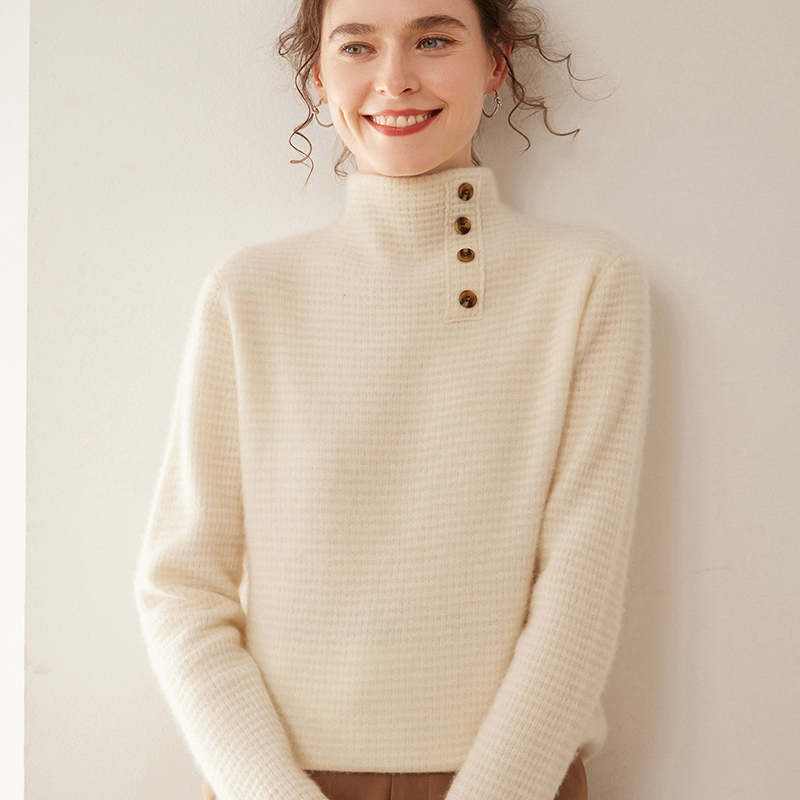 SERENDIPTY羊绒衫意奢高端秋冬半高领高端提花套头毛衣女宽松百搭