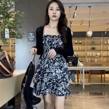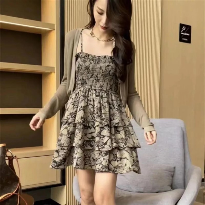 夏季茶系穿搭法式复古气质御姐轻熟风高级感吊带连衣裙两件套装女