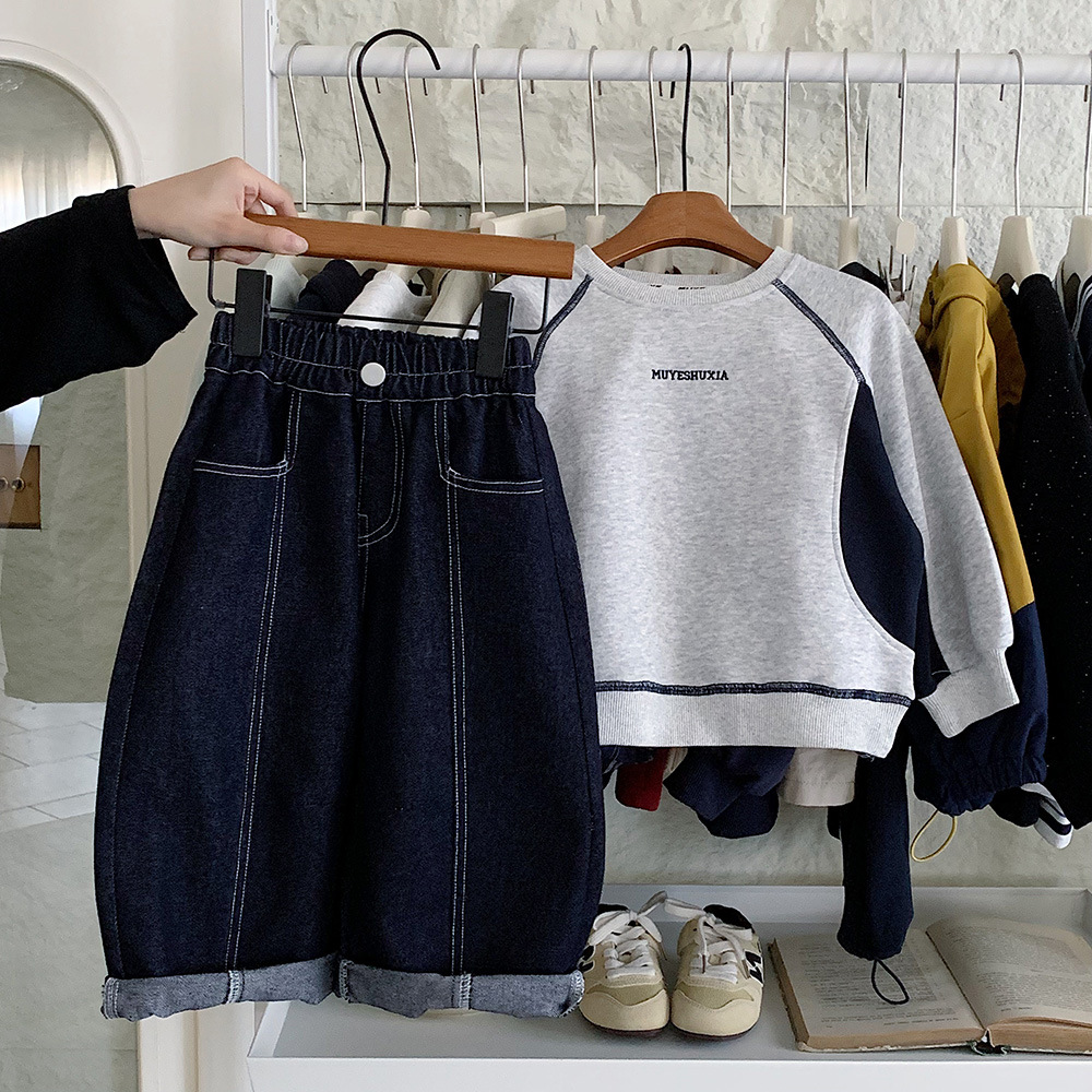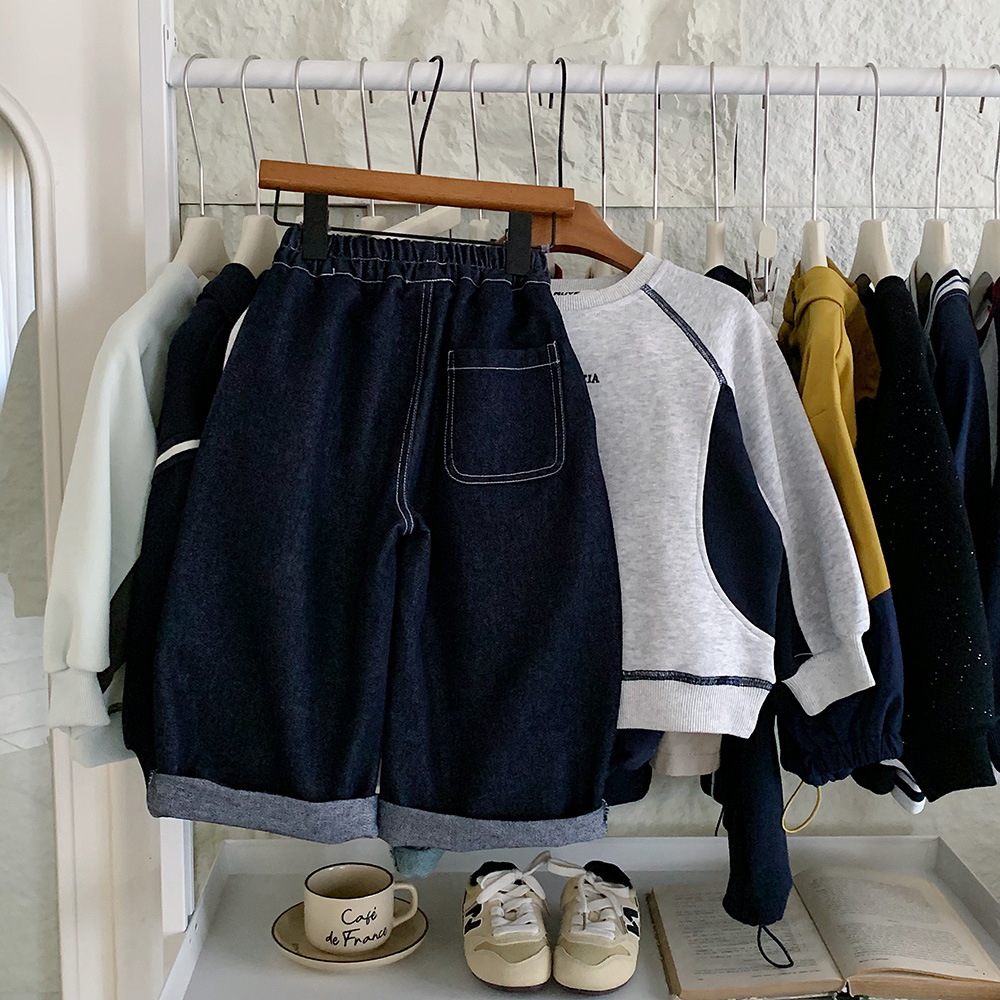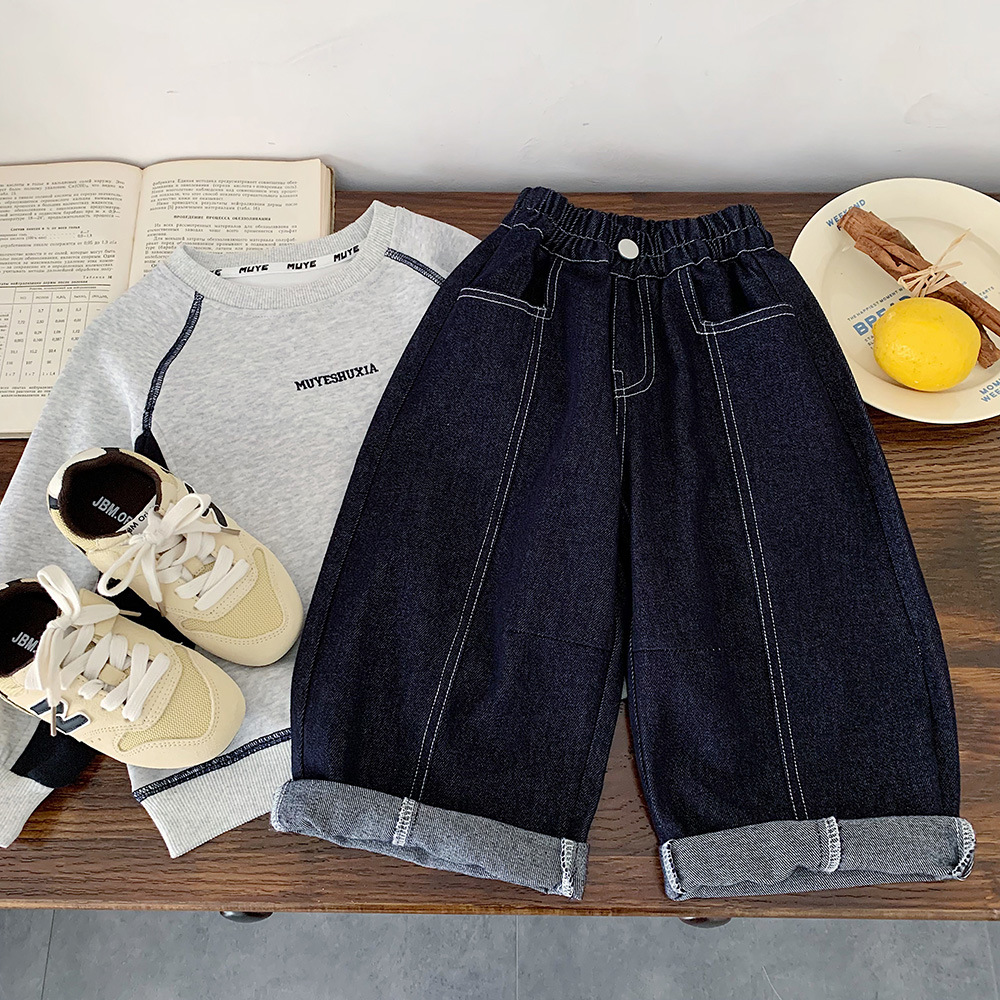小童时髦拼接明线牛仔裤男女童2025春秋装宝宝休闲长裤儿童直筒裤