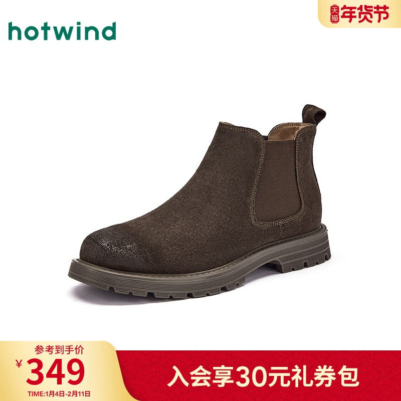 热风男鞋冬季新款切尔西靴男士时尚休闲靴复古百搭舒适短靴男