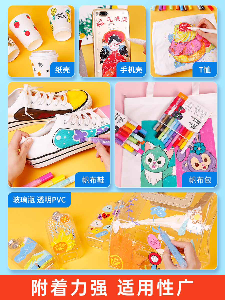 蒙玛特丙烯马克笔12/24/36色手绘相册DIY画鞋防晒防水不掉色速干儿童专用油漆笔广告设计彩色涂鸦套装丙烯笔