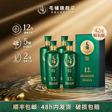 毛铺草本年份酒12年500ml4瓶42度箱装高档酒水白酒基酒官方旗舰店