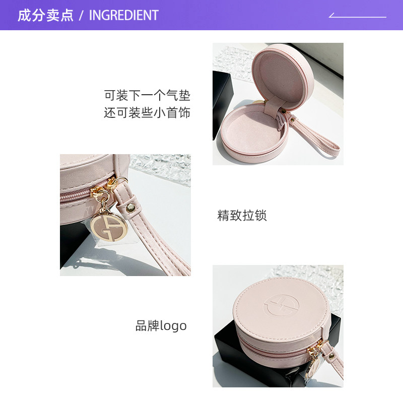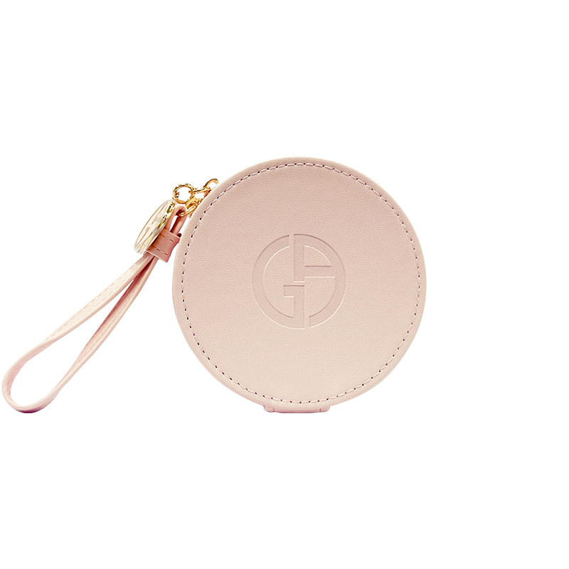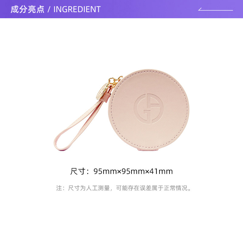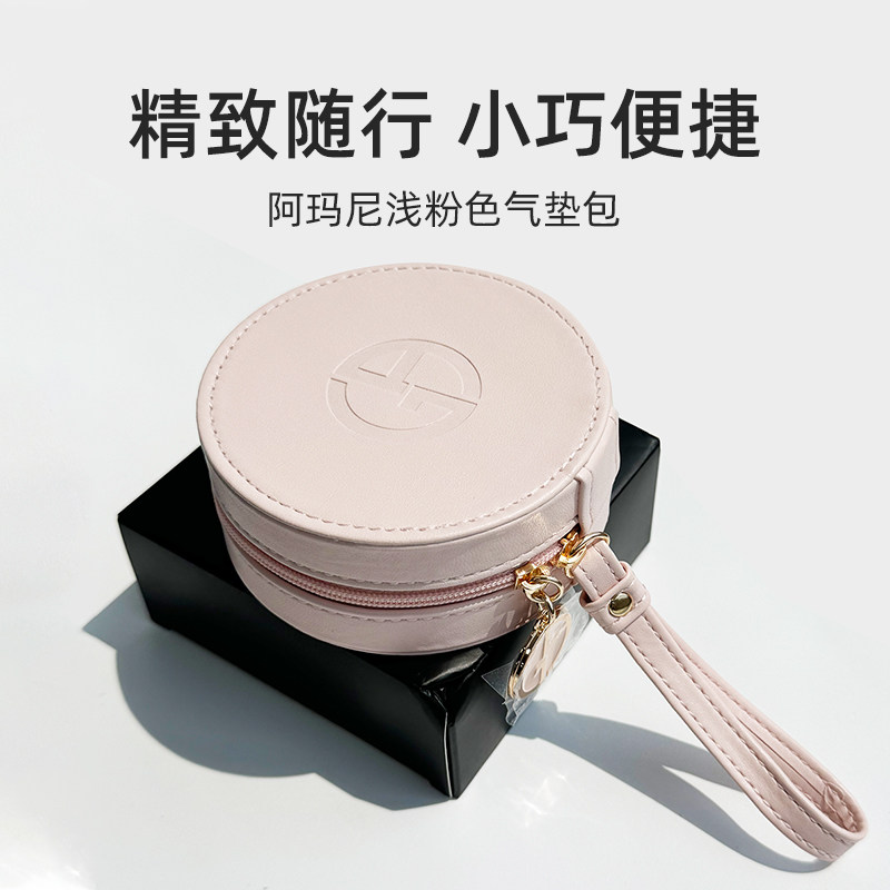 【自营】阿玛尼浅粉色气垫包化妆包圆形零钱包收纳包小巧便携