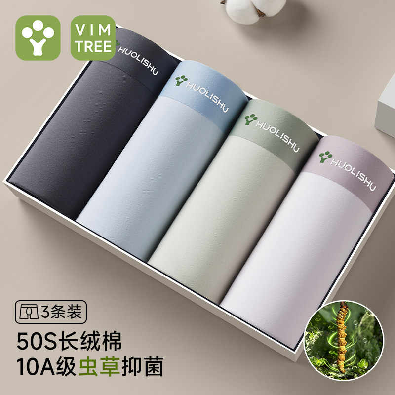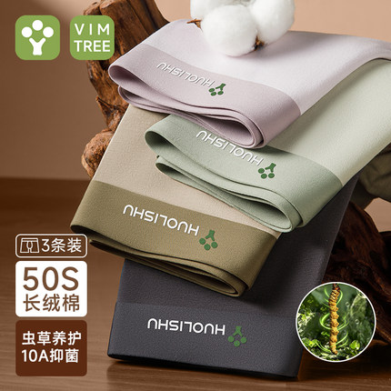 活力树长绒棉虫草抗菌男士内裤纯棉男生四角短裤男款平角裤男式