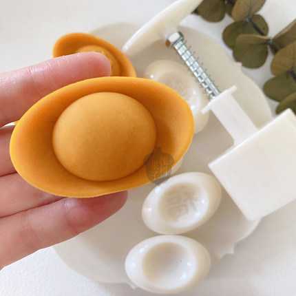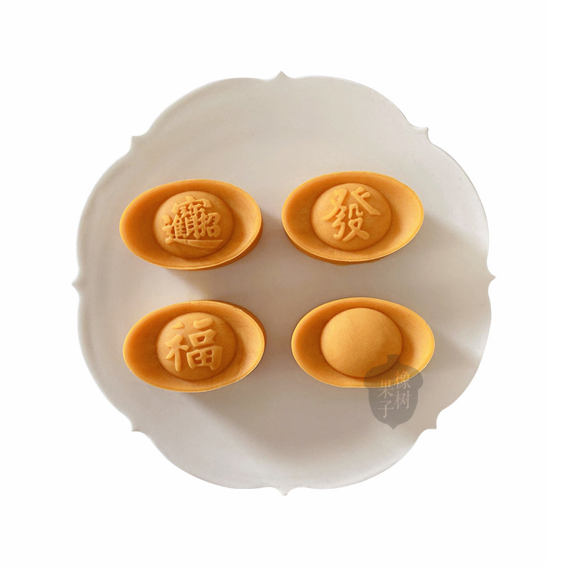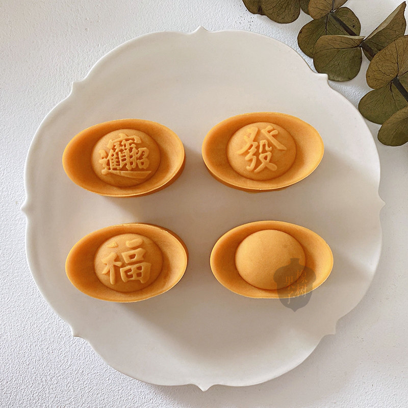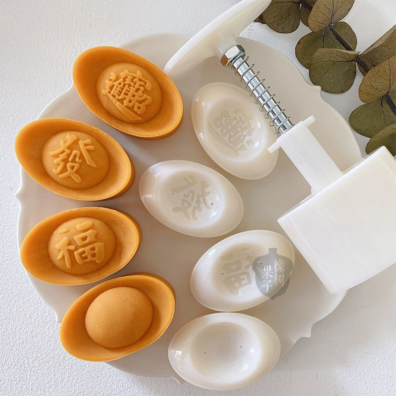 橡树果子新款招财金元宝造型冰皮绿豆糕点广式月饼模套装50g63g