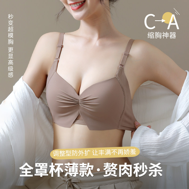 全罩杯无痕内衣女大胸显小胸薄款无钢圈文胸聚拢收副乳防下垂胸罩