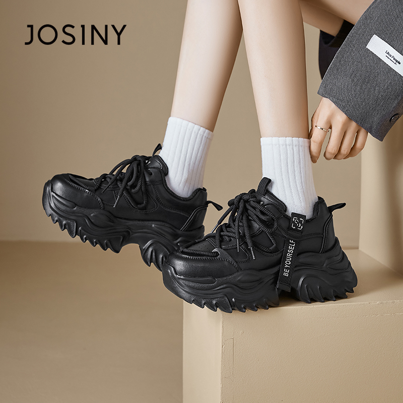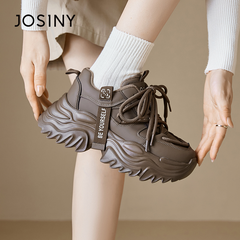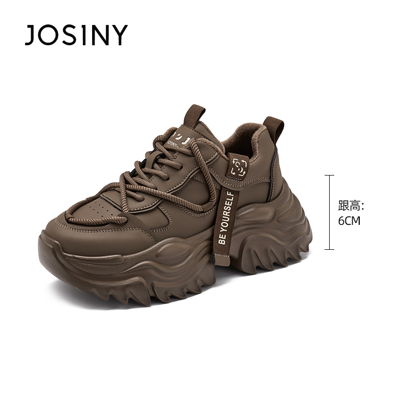 卓诗尼女鞋撤柜正品老爹鞋女秋冬季新款加绒保N暖小个子厚底增高