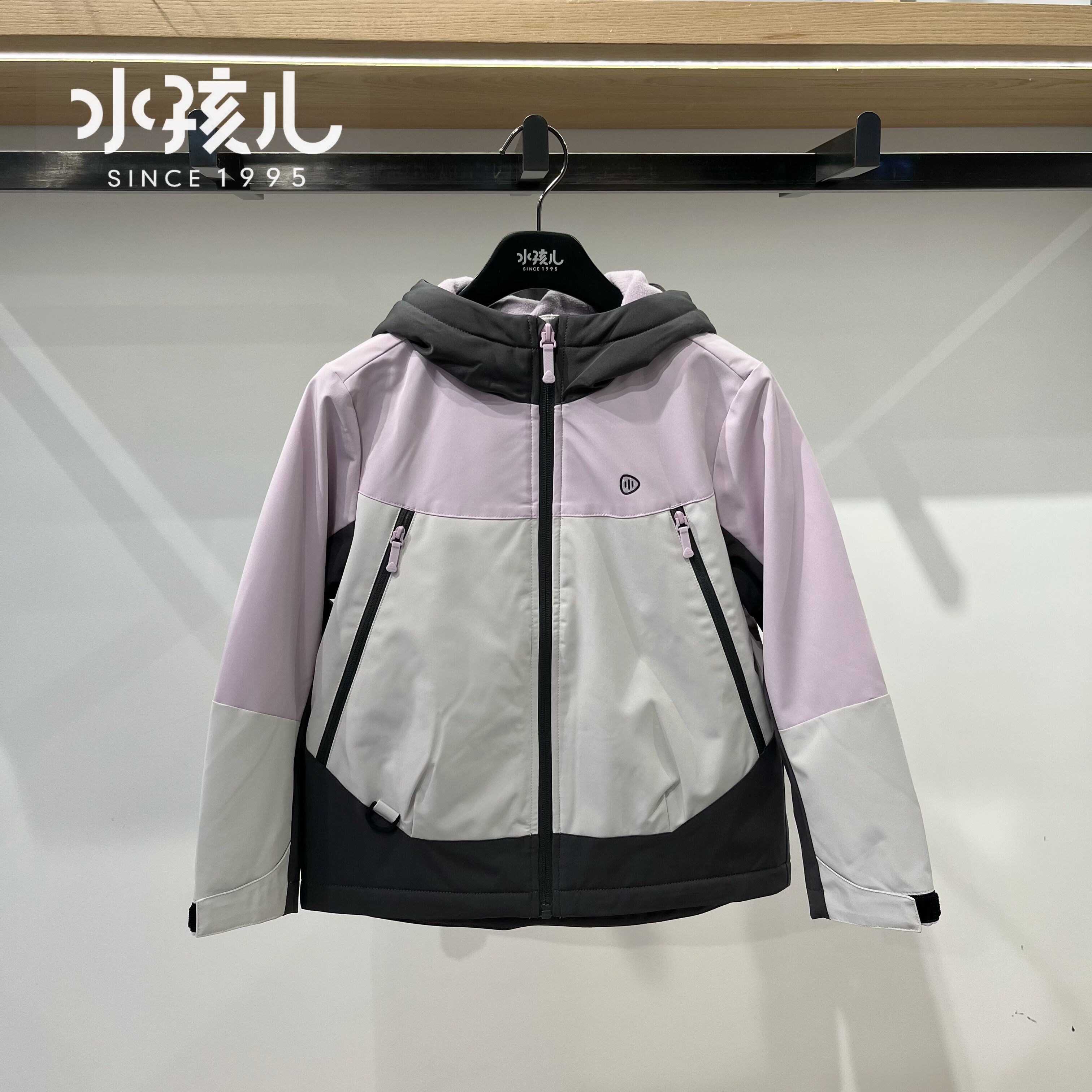 商场同款水孩儿童装女童加绒冲锋衣2025冬季新款厚风衣时尚厚外套