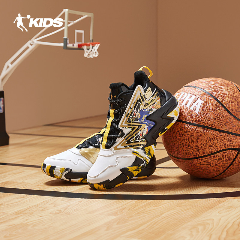 插画师乔丹儿童篮球鞋旋钮扣2024春秋季新款中大童鞋子男童运动鞋