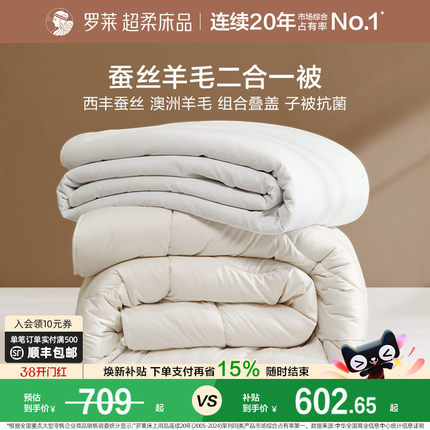 罗莱家纺蚕丝被子澳洲进口羊毛二合一子母被抗菌防螨被芯四季可用