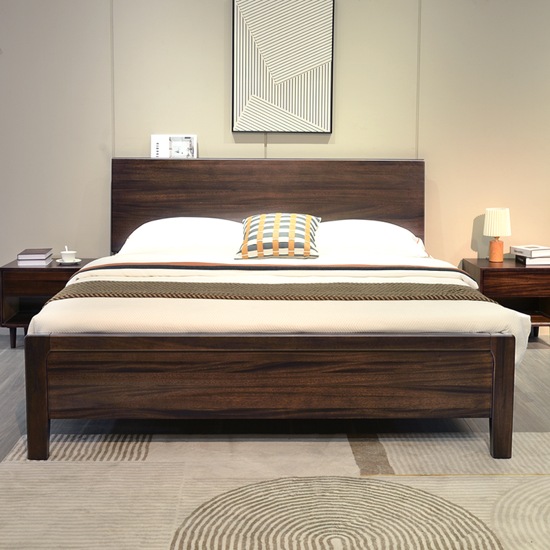 全实木床南美黑胡桃木现代简约1.2米1.35双人床1.8储物原木新中式