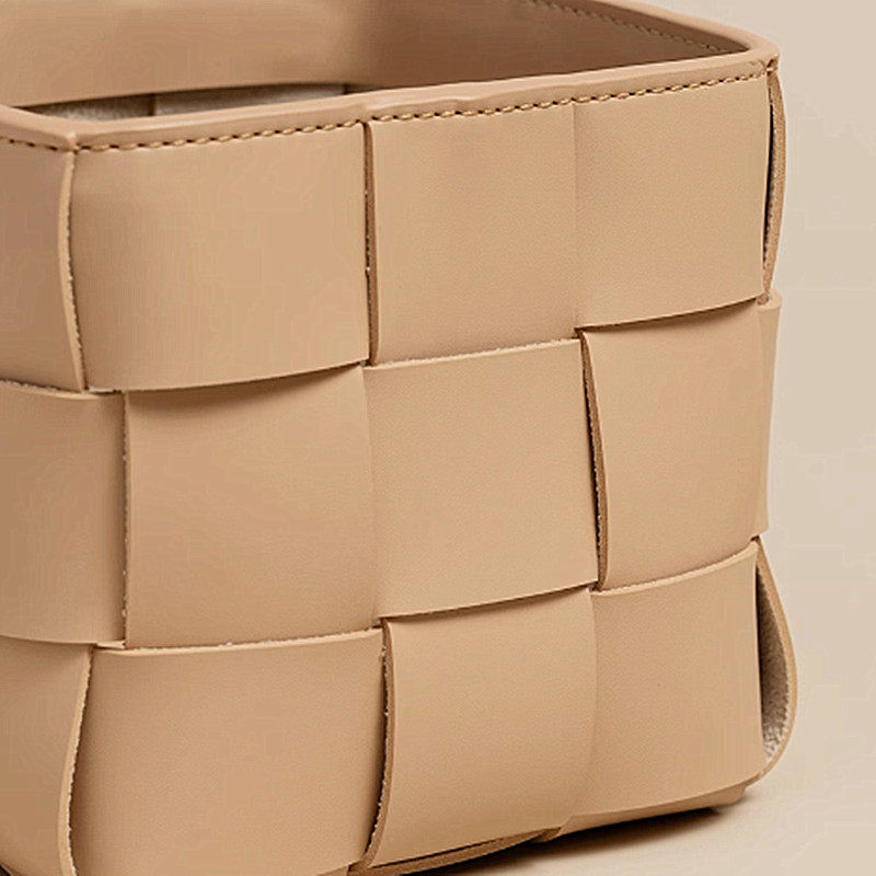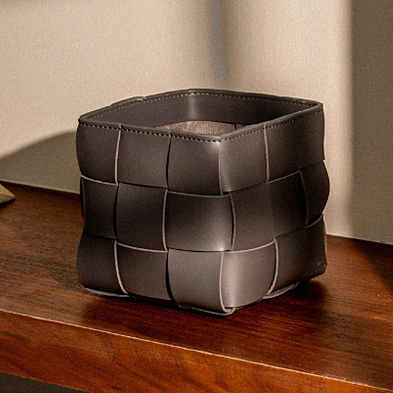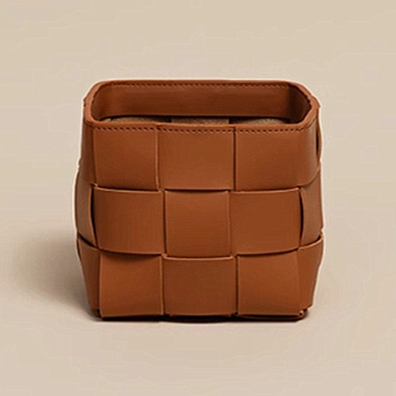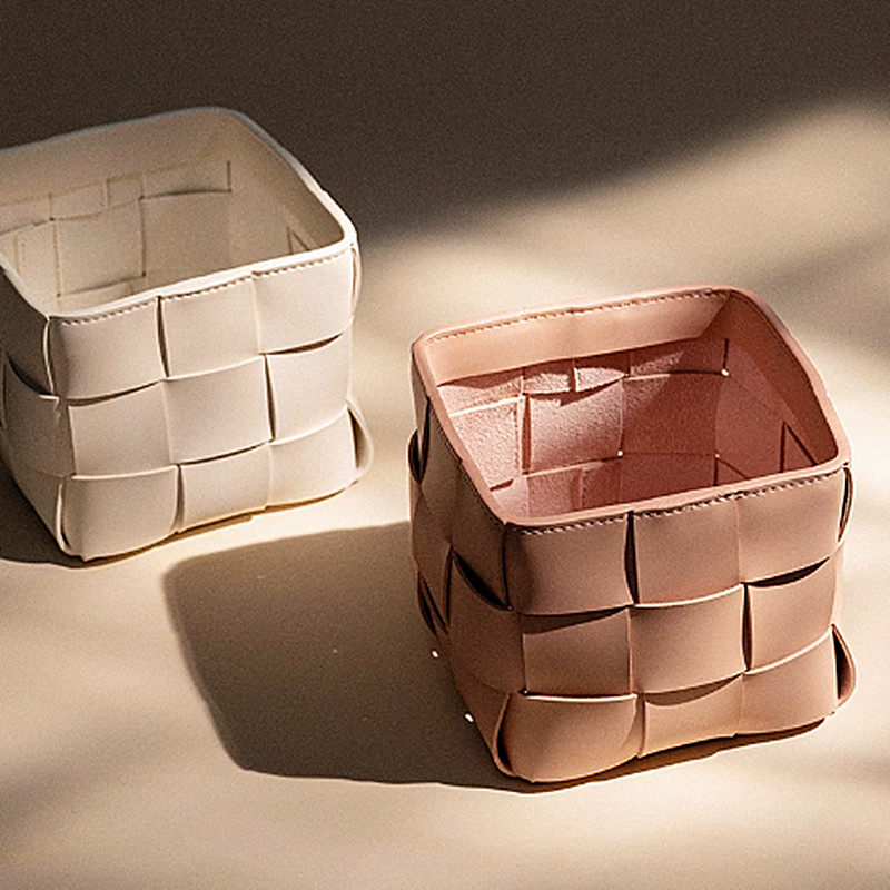 皮革纯色收纳筒轻奢编织收纳框方形茶几遥控器收纳筒化妆刷收纳盒