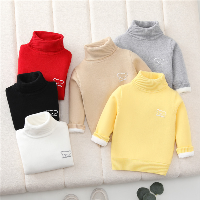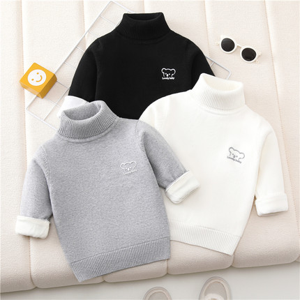 儿童高领毛衣加绒加厚中小童秋冬装男童针织衫女童宝宝纯棉打底衫