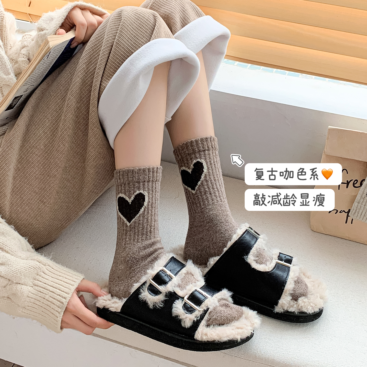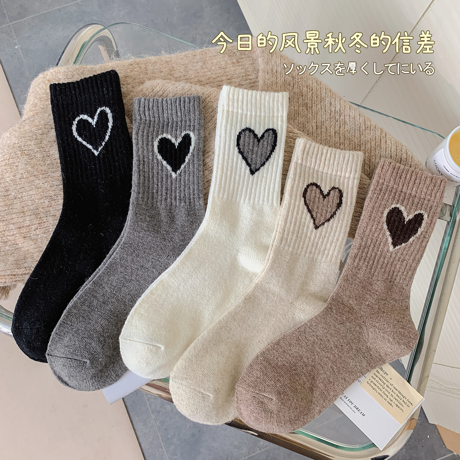 爱心羊毛袜子女秋冬季中筒袜外穿复古学院风加厚保暖女生冬天长袜
