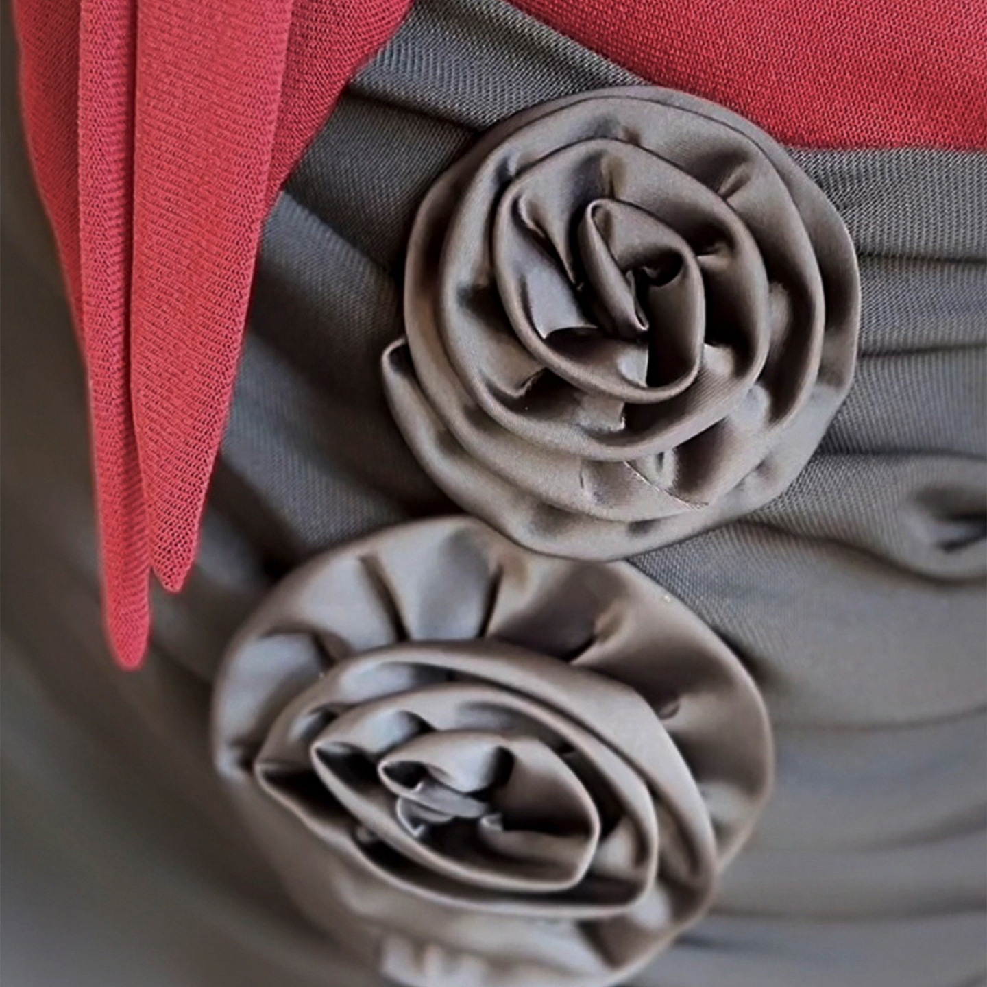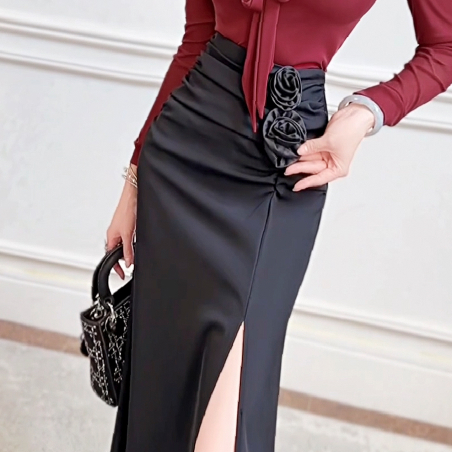 飞姐定制黑色开叉立体花朵设计半身裙高腰掐褶遮肉显瘦鱼尾裙