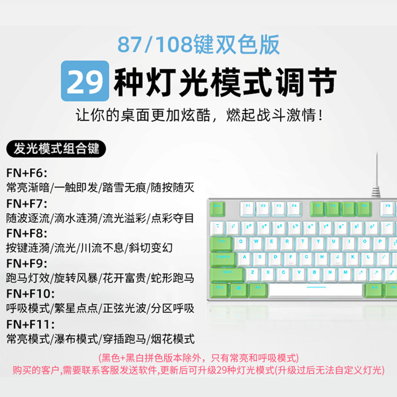 达尔优牧马人EK815果绿有线游戏办公机械键盘有线电竞电脑笔记本