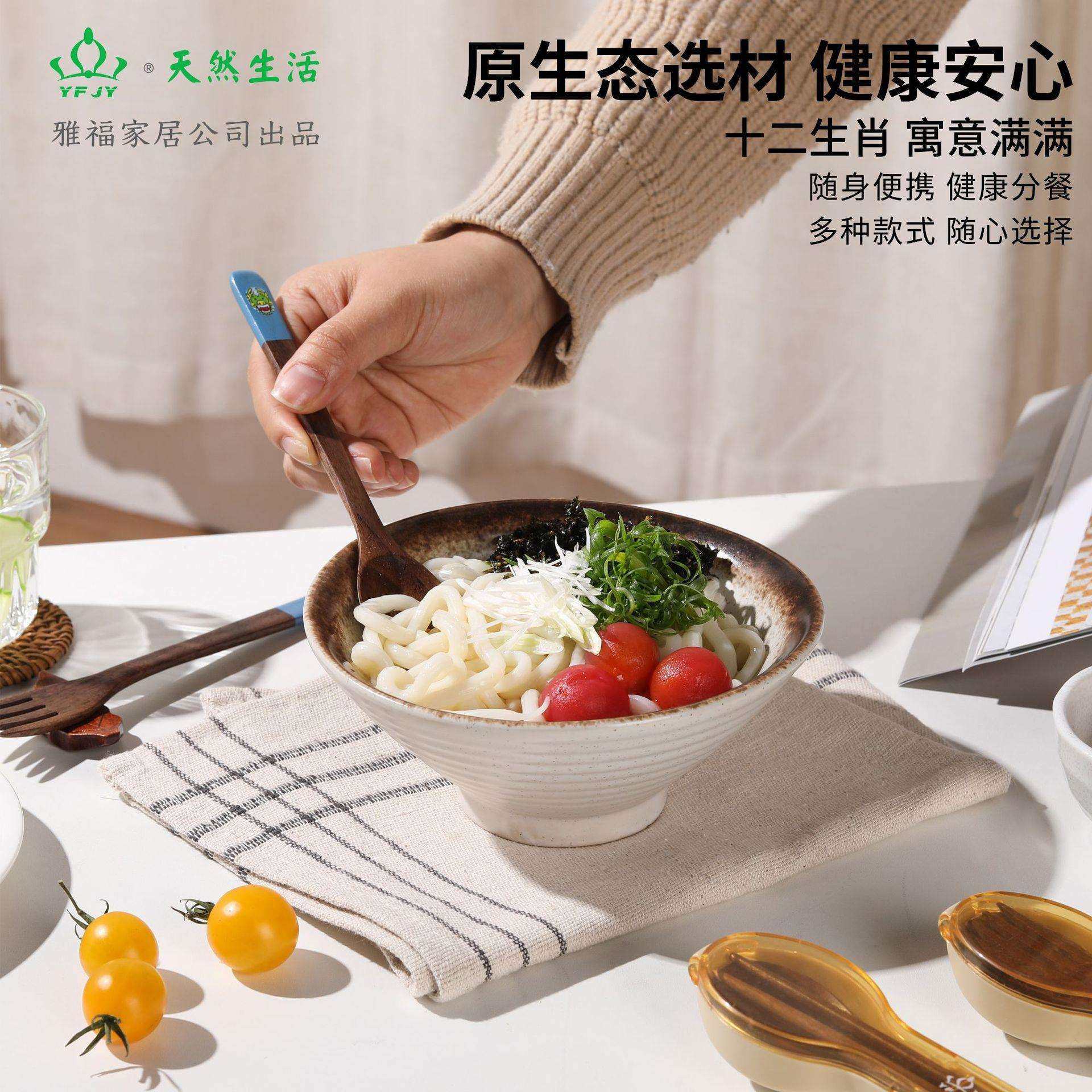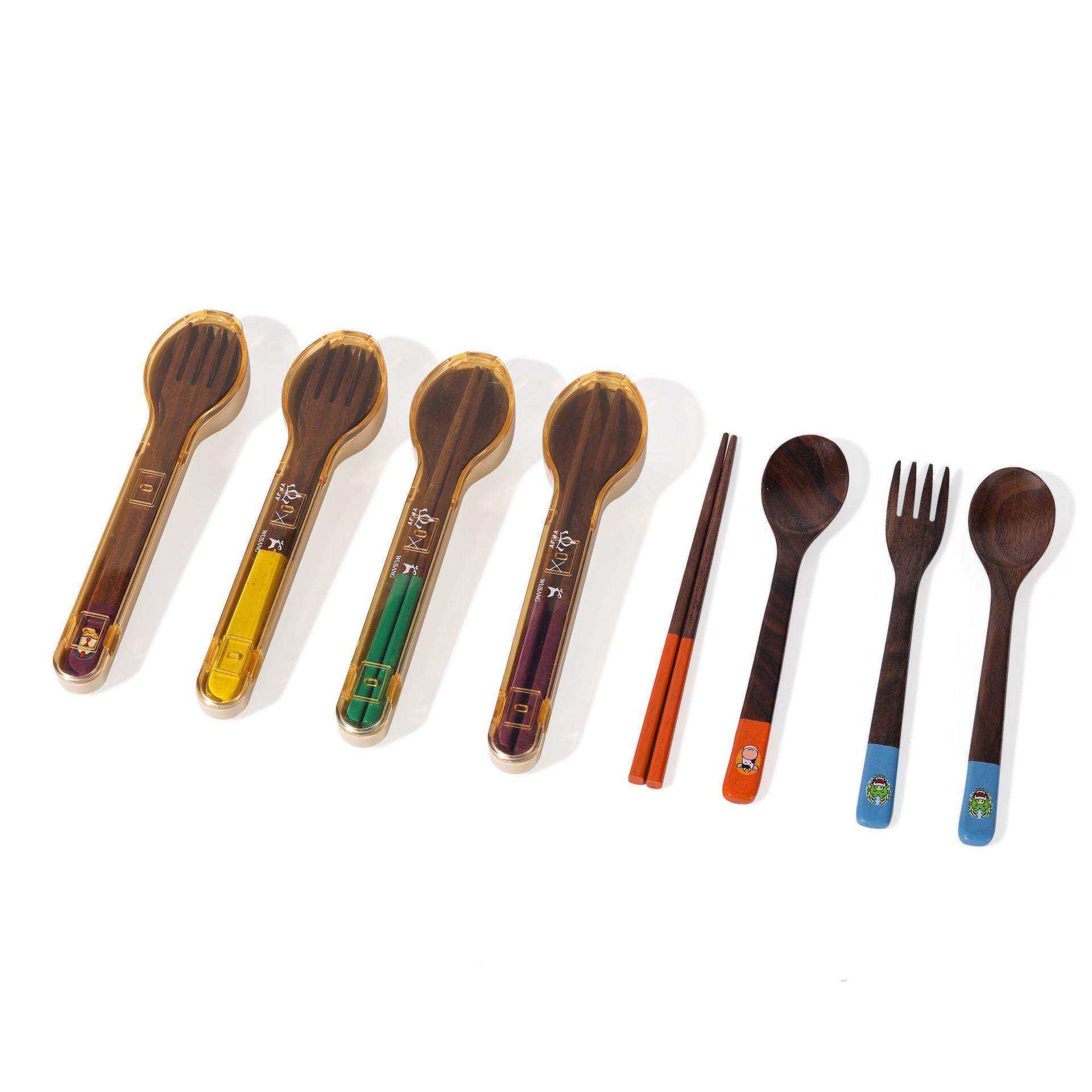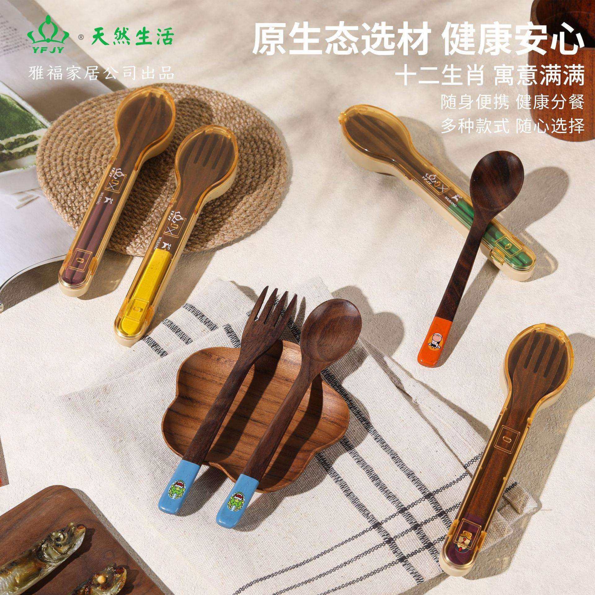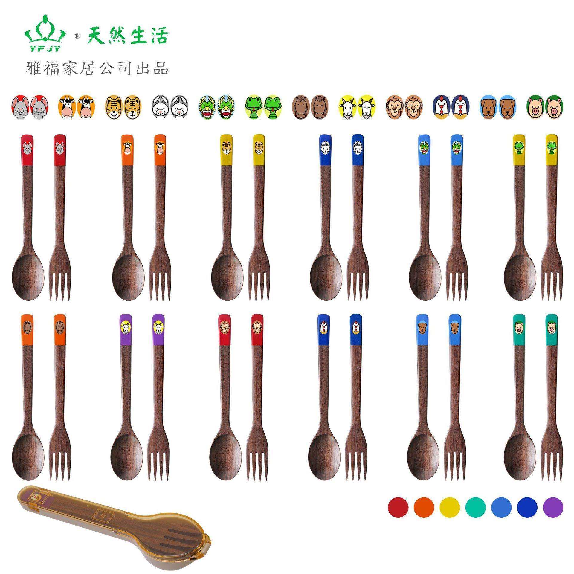 YFJY日常用品黑胡桃木便携餐具套装勺子筷子叉子彩虹组合户外餐具