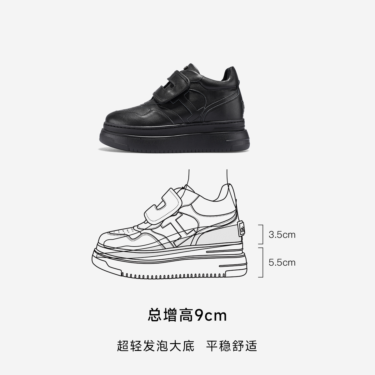 【明星同款】iiJin艾今9cm厚底内增高超轻魔术贴休闲板鞋女283GNC