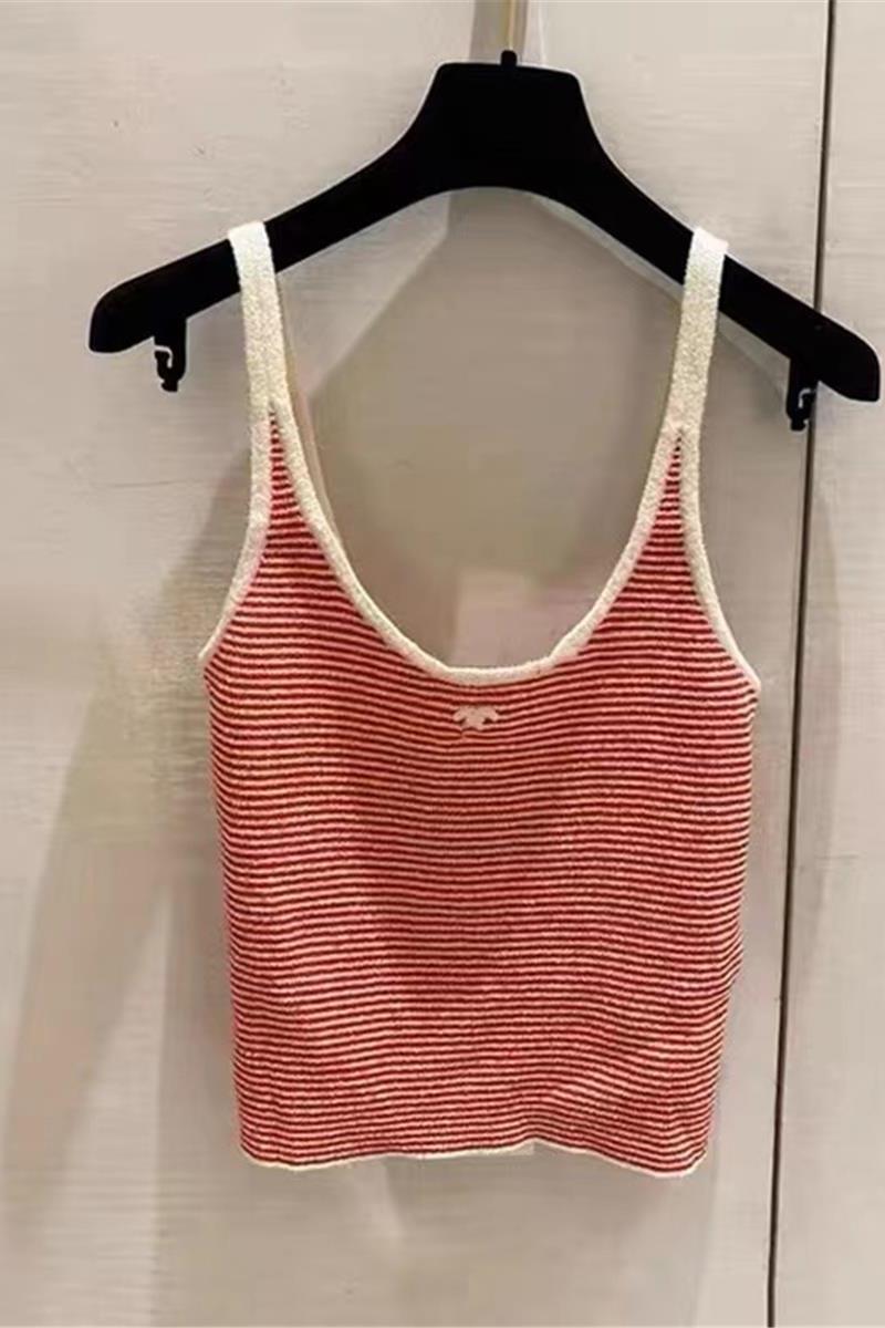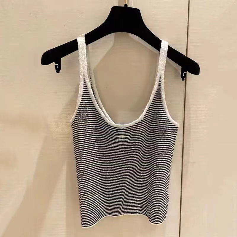 2025春夏新款时尚气质修身显瘦条纹设计感小众针织吊带背心女洋气