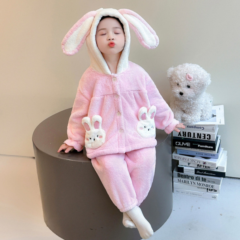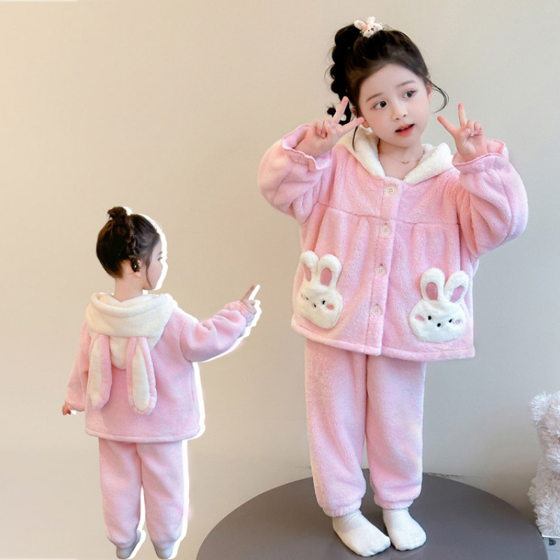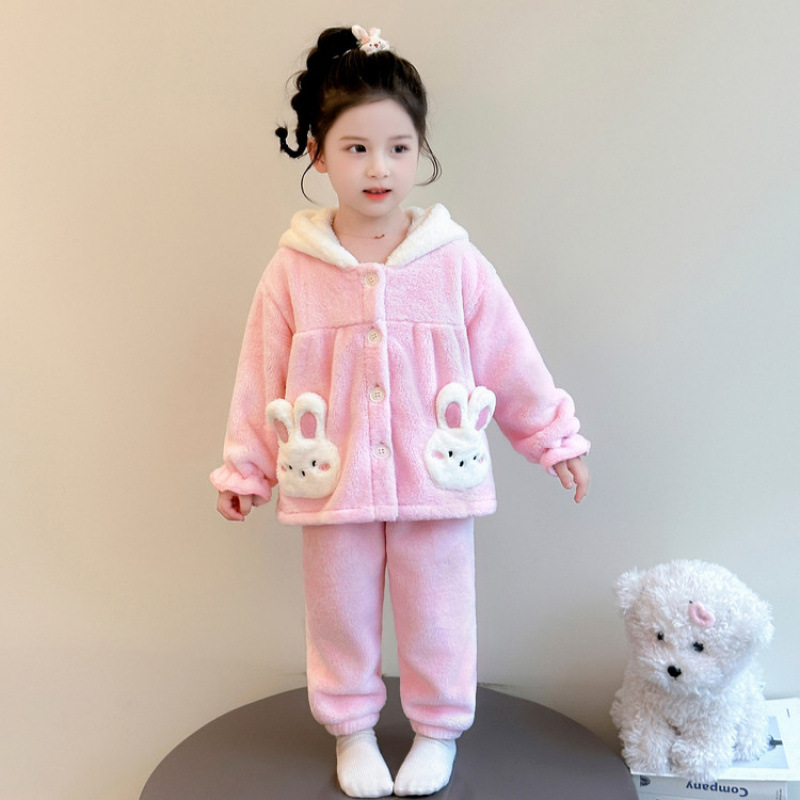 儿童睡衣秋冬季珊瑚绒2025新款女孩拉布布宝宝冬款家居服女童套装