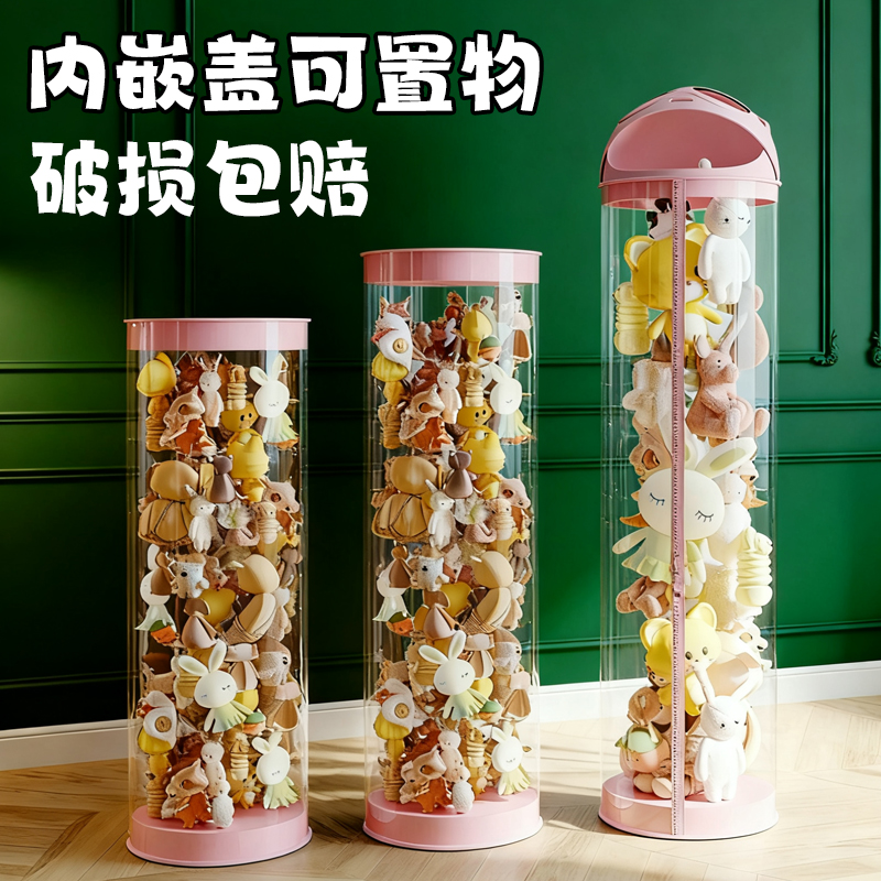 娃娃收纳桶家用儿童装玩偶大公仔收纳筒毛绒玩具整理箱透明整优选