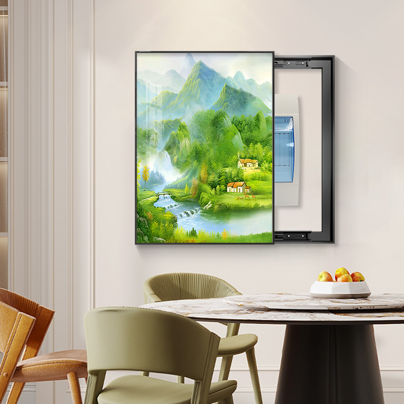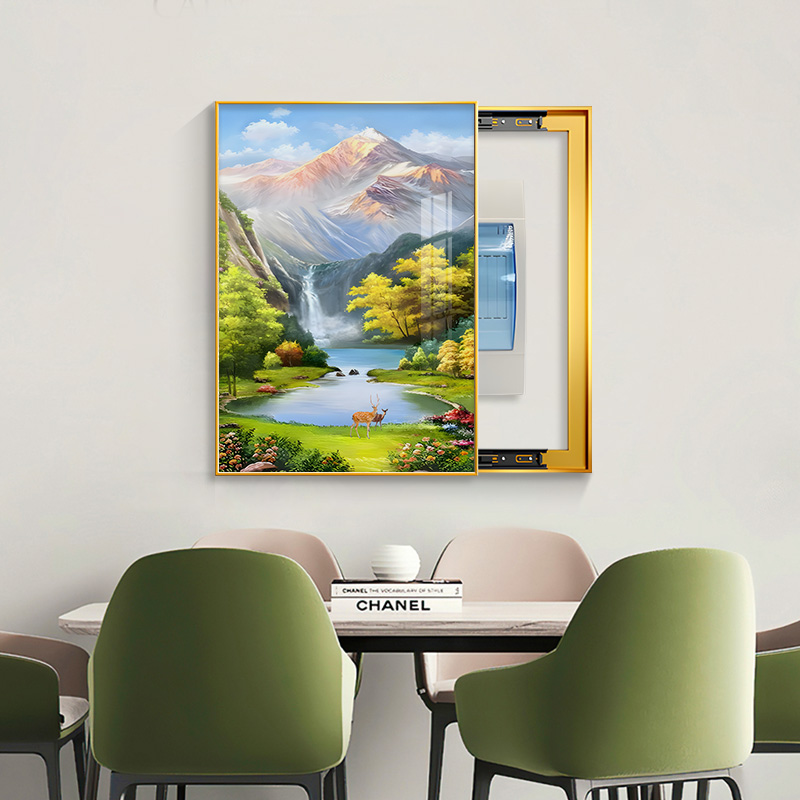 山水画电表箱装饰画竖款2025新款轻奢高级感配电盒遮挡挂画免打孔