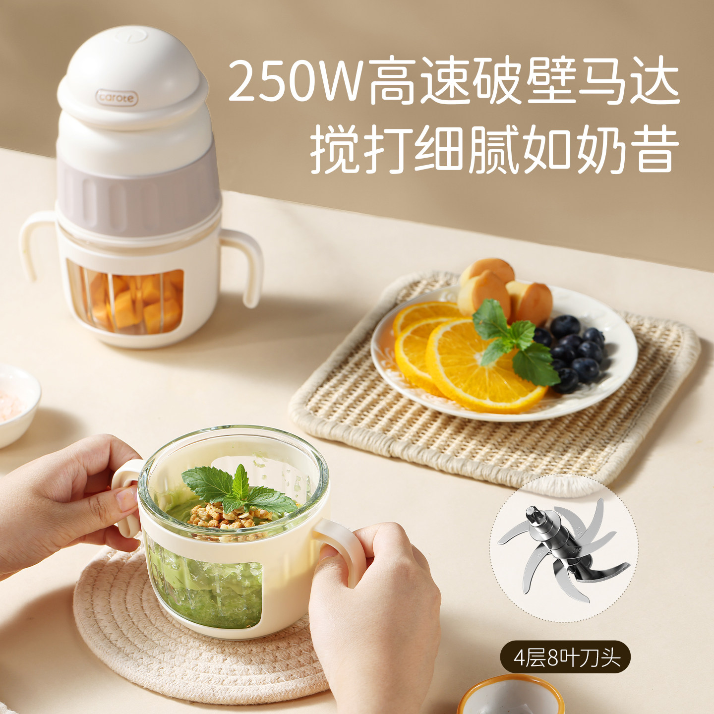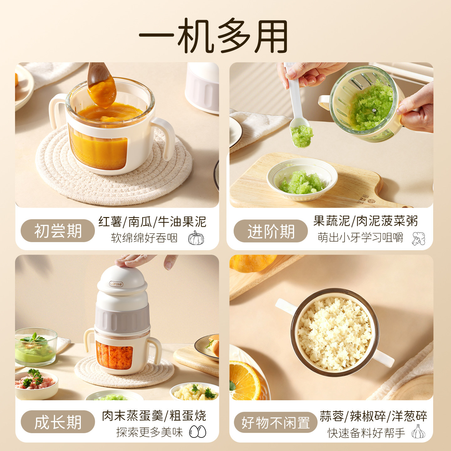 卡罗特辅食机婴儿料理宝宝小型多功能婴幼绞肉机家用搅碎破壁打泥