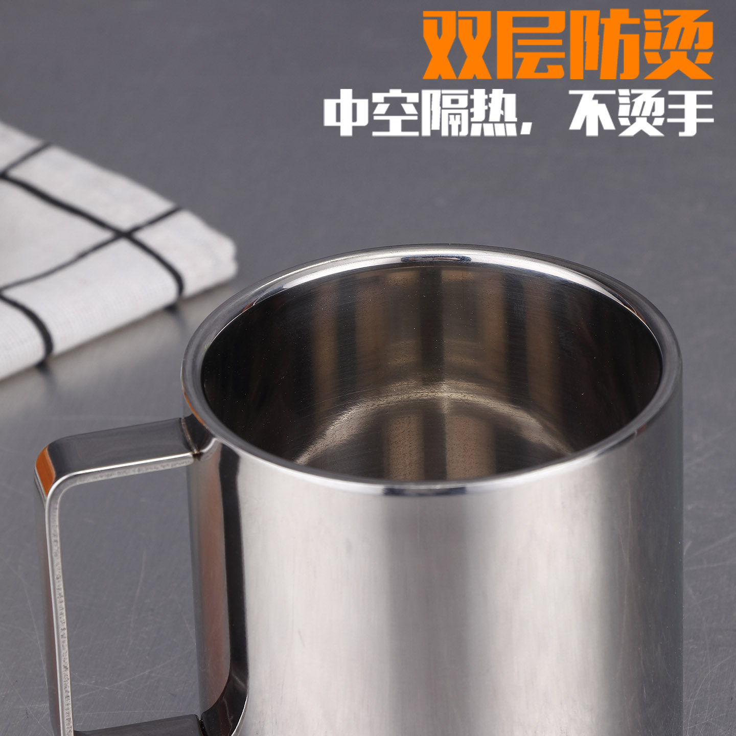 带把手304不锈钢咖啡杯碟套装带勺精致防烫水杯家用儿童马克杯子